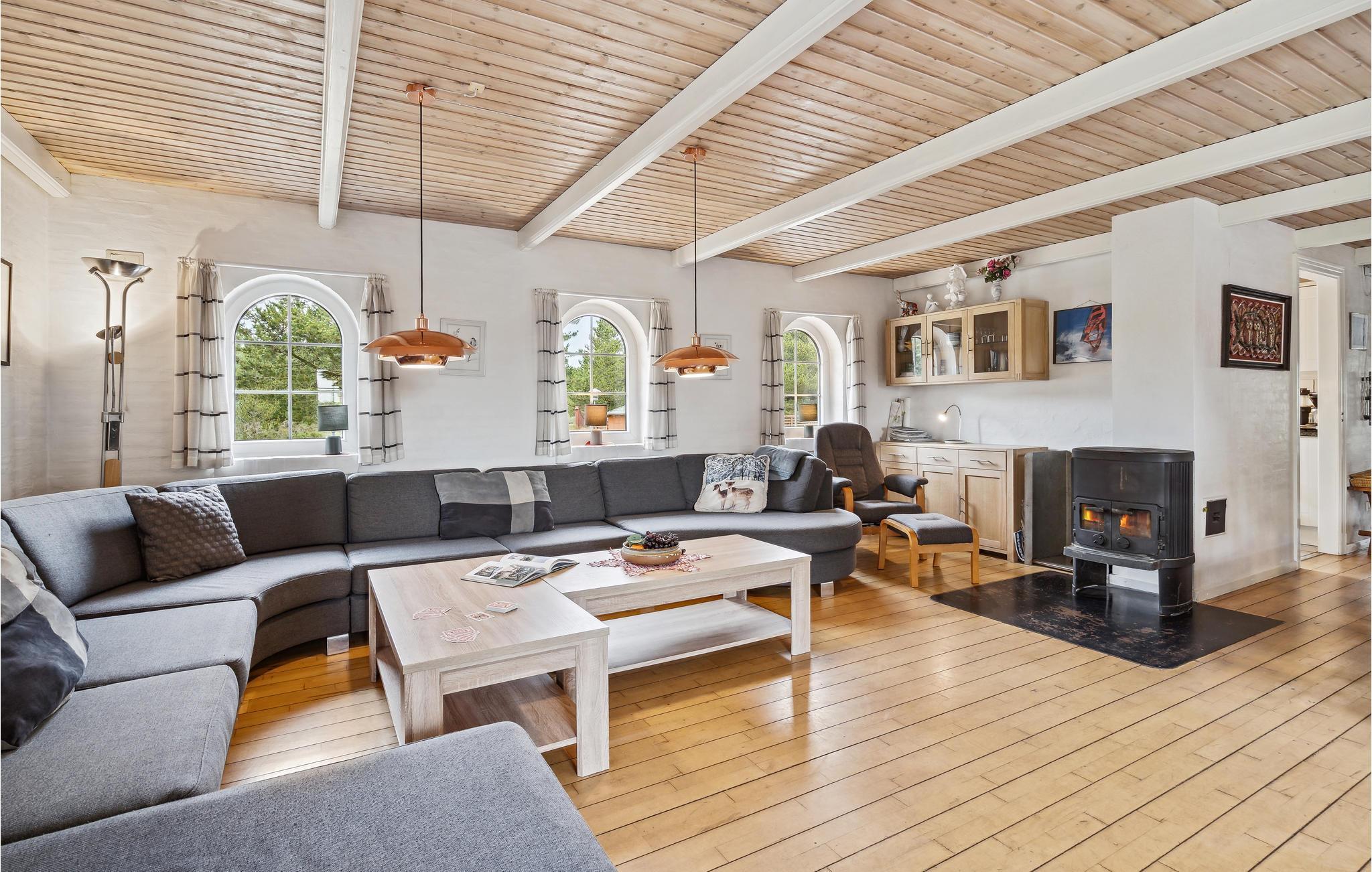 Das schicke Steinhaus auf zwei Etagen ist gut für einen Familienurlaub geeignet. Besonders der Poolraum mit 28 m² großem Pool, der 4-Personen Whirlpool, der für eine entspannende Unterwassermassage sorgt und die Sauna sind ein besonderes Erlebnis. Die gut ausgestattete Küche ist mit dem Wohnraum kombiniert. Am Haus ist eine große, geschützte Terrasse, die immer ein windgeschütztes Plätzchen bereithält. Es gibt mehrere gemütliche Sitzgelegenheiten.
