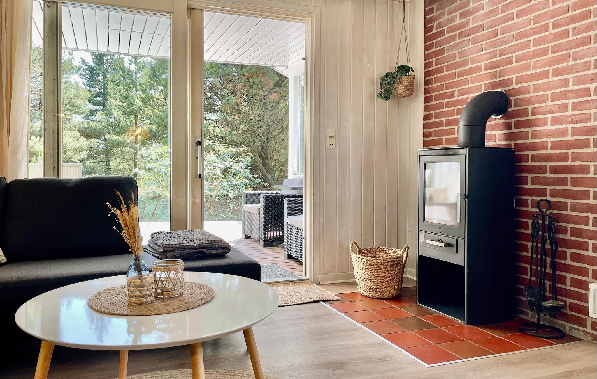 Hell eingerichtetes, familienfreundliches Ferienhaus auf großem Naturgrundstück mit Terrasse und moderner Wärmepumpe nahe Lakolk Strand.