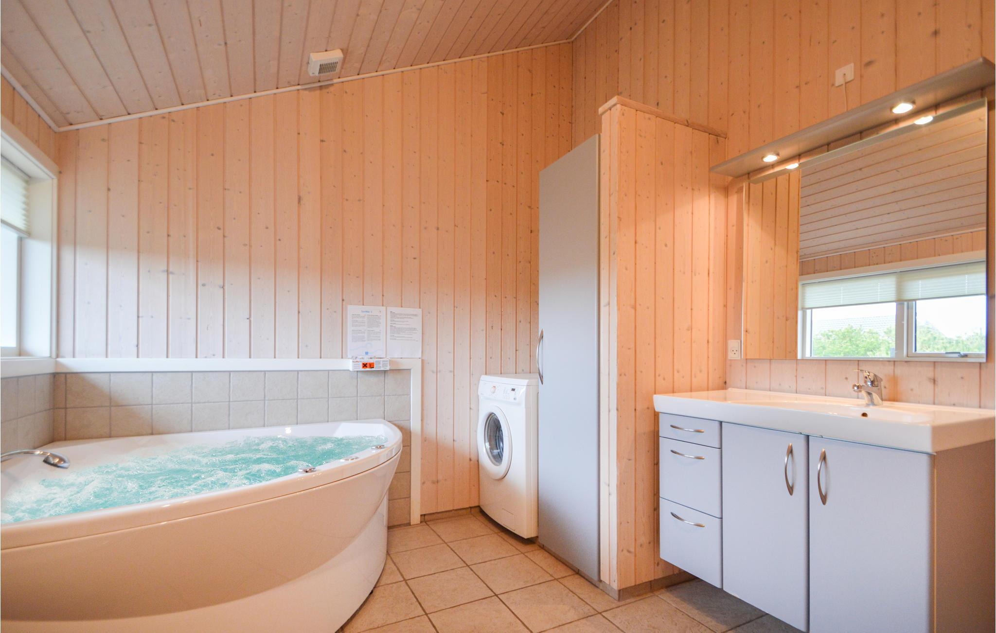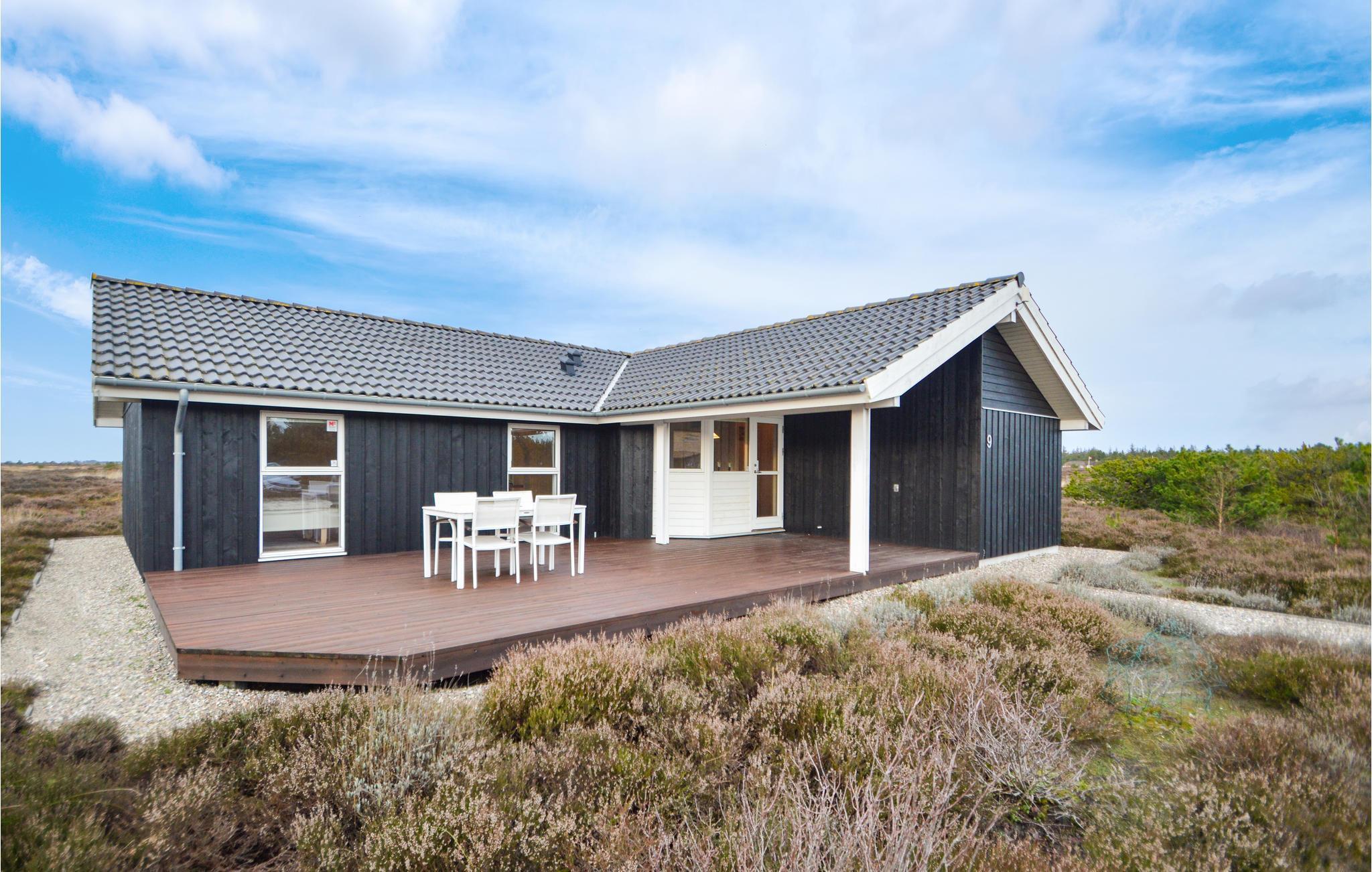 Dieses schöne Ferienhaus liegt am Ende einer kinderfreundlichen Sackgasse in Kongsmark. Von der einen Terrasse haben Sie eine einzigartige Aussicht über das Heidegebiet. Über den Småfolksvej kommen Sie zum Strand von Lakolk, Nordeuropas breitestem Sandstrand. Der Strand ist bis hinunter ans Ufer der Nordsee mit dem Auto zu befahren. Der Hauseigentümer hat Wert auf eine funktionale Ausstattung gelegt und auch für körperliche Betätigung wurde gesorgt. Der Aktivitätsraum verfügt über eine Tischtennisplatte. Herrliche Schlafräume und hübsche Badezimmer. Viele schöne Radwege. Die Benützung des Hallenbades sowie seiner Sport- und Fitnesseinrichtungen ist in der Miete enthalten.