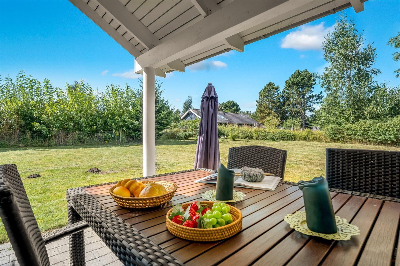 Draußen erwartet dich eine teilweise überdachte Terrasse mit Gartenmöbeln und Grill, und auf dem Grundstück gibt es Platz für Ballspiele und andere Aktivitäten im Freien. Nur wenige Gehminuten vom Haus entfernt liegen der Strand und das Meer – hier können du und deine Familie herrliche Stunden verbringen.