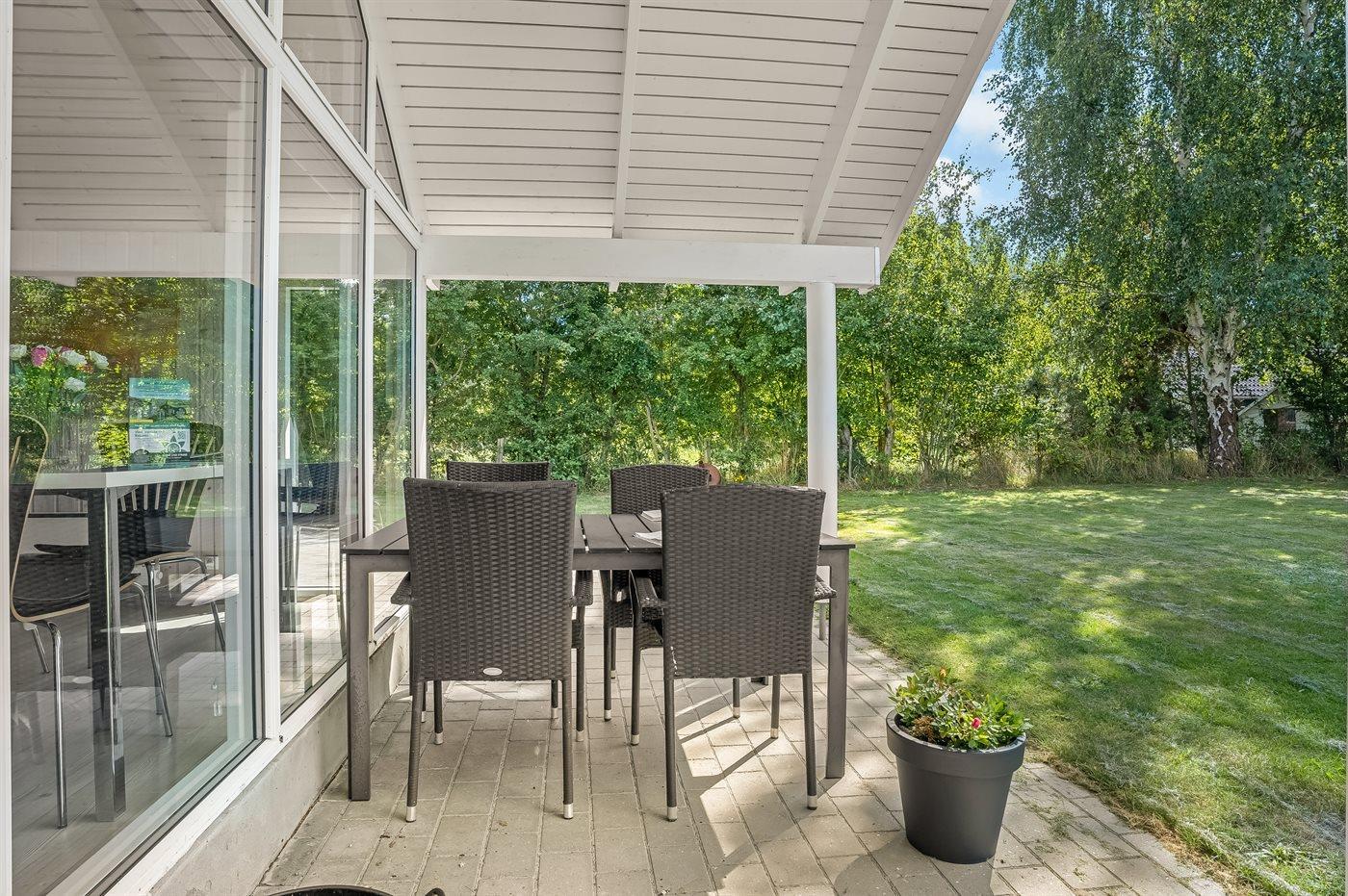 Die Ferienunterkunft liegt auf einem 890 m² großen Gartengrundstück. Das Grundstück ist mit einem 60 cm hohen Zaun eingezäunt. Die Entfernung zum Meer beträgt 500 m. Die nächste Einkaufsmöglichkeit liegt 1200 m entfernt. Es steht ein offenes Terrassenareal zur Verfügung. Außerdem gibt es überdachte Terrasse. Es steht ein Grill zur Verfügung. Es ist ein Ladestecker für Elektroautos installiert. Parkplatz auf dem Grundstück.