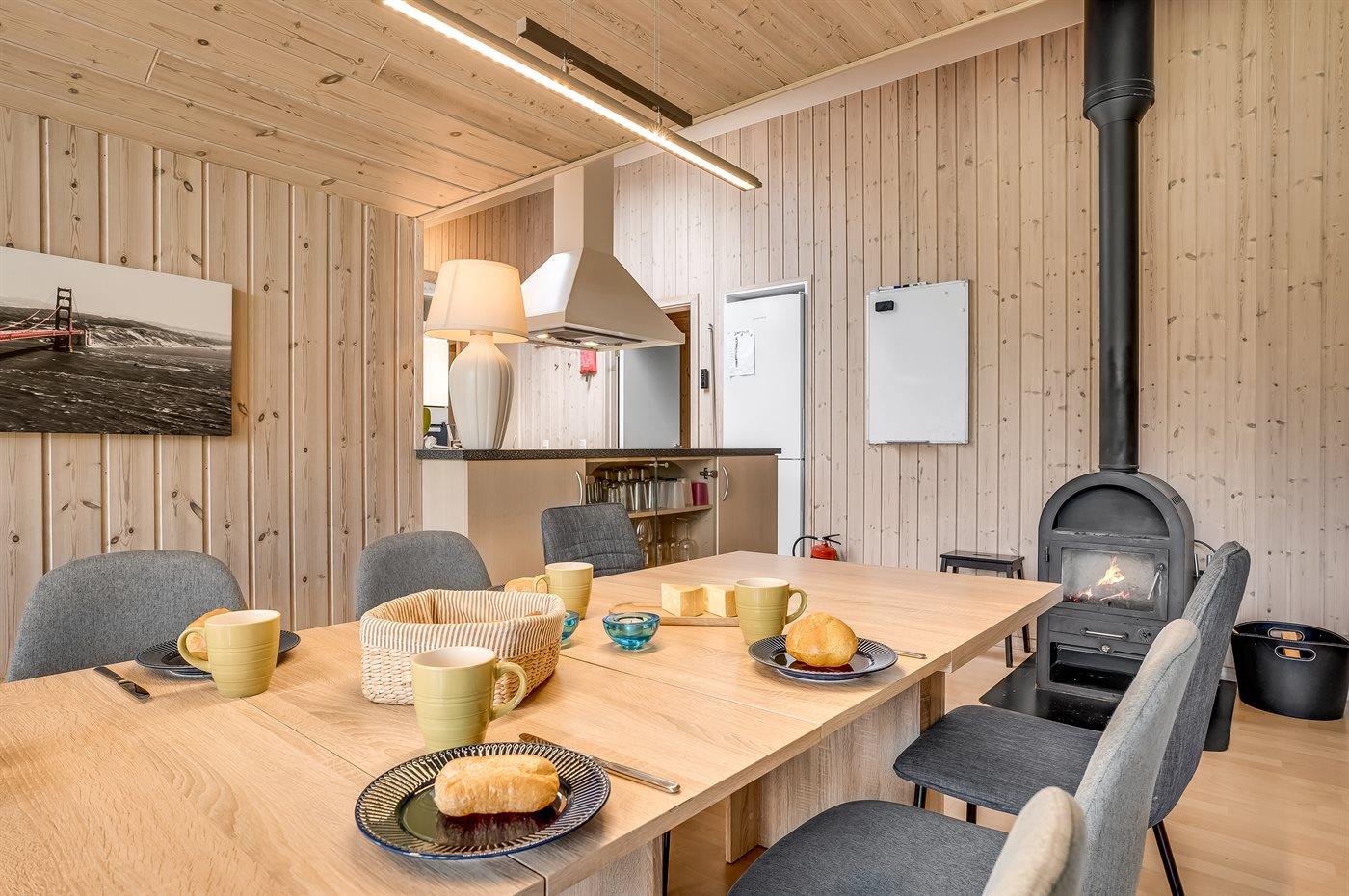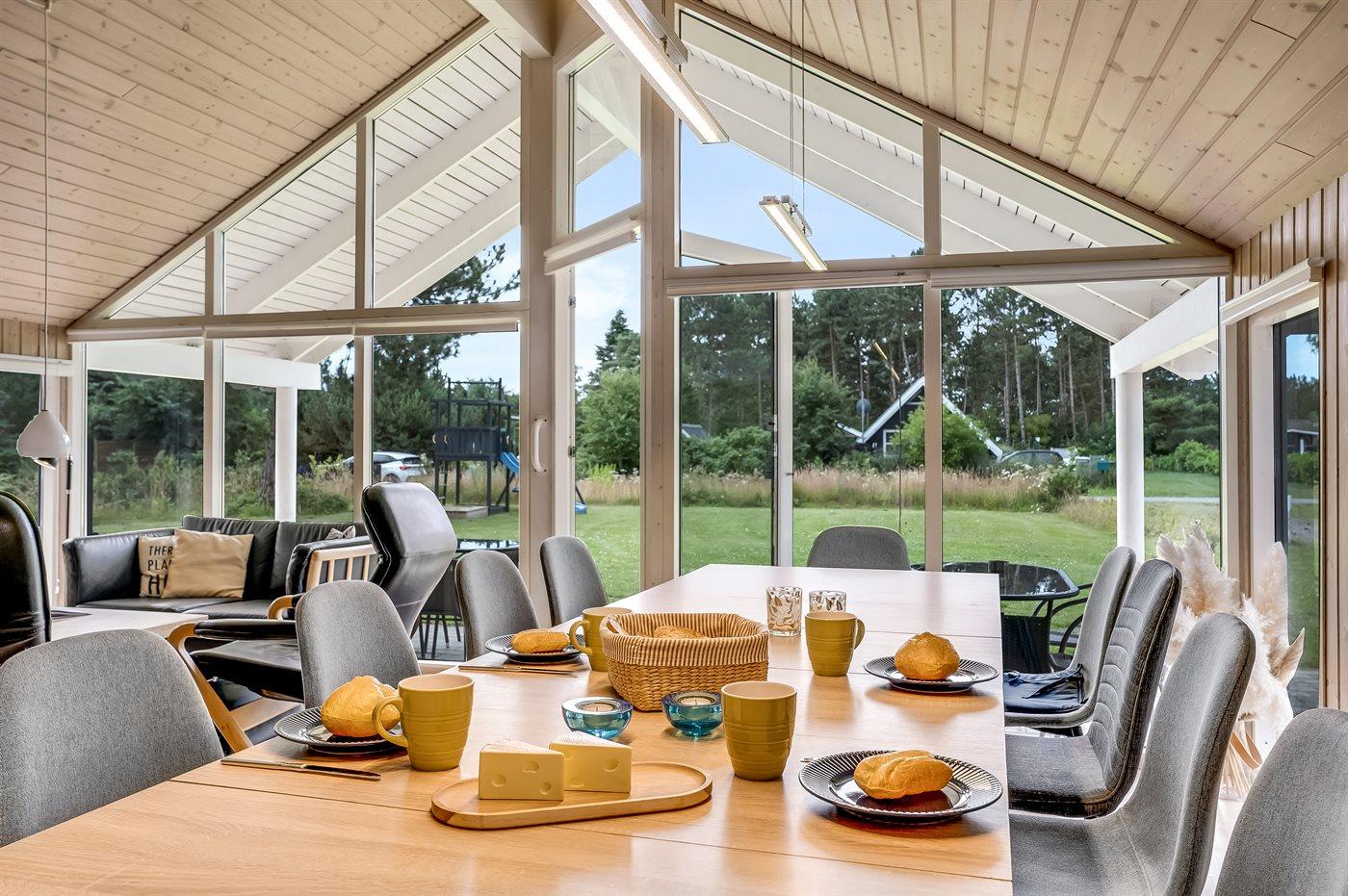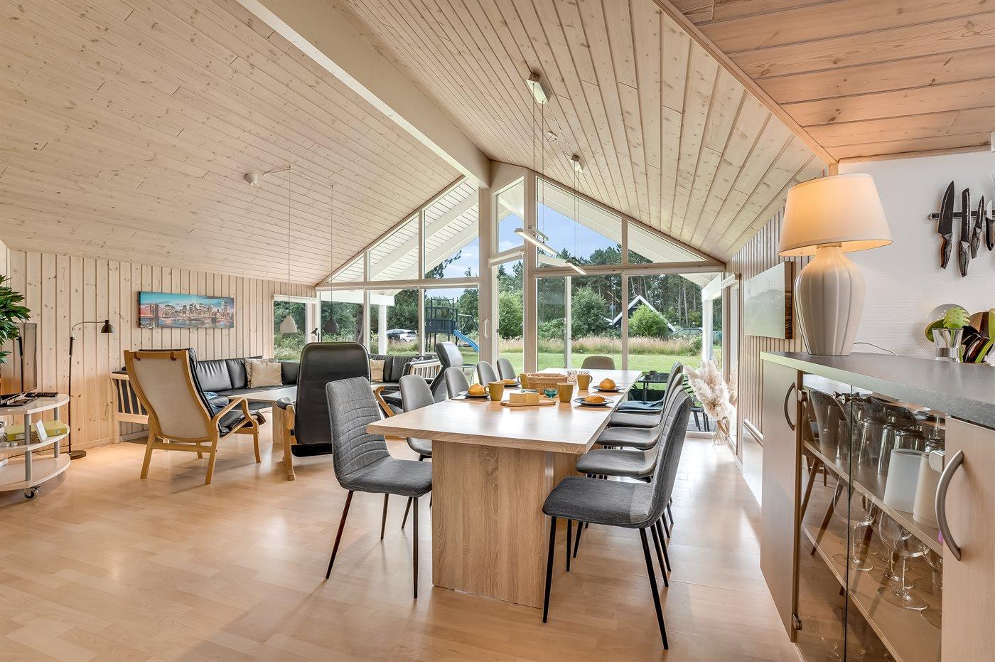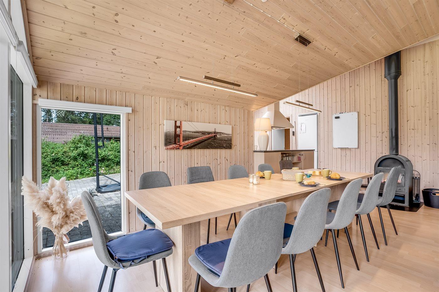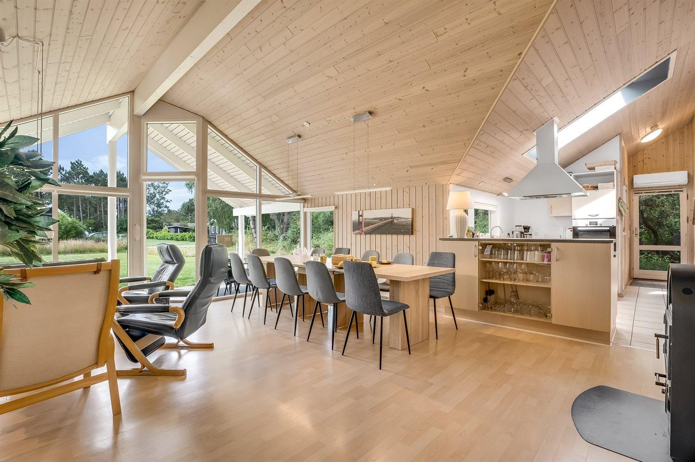 Ein gemütliches und hell eingerichtetes Aktivitäts-Ferienhaus mit Platz für bis zu 12 Personen. Die geräumige Küche/Esszimmer des Hauses liegt in offener Verbindung mit dem Wohnzimmer, sodass die Köche des Tages problemlos an den Gesprächen teilnehmen können, die im Wohnzimmer stattfinden. Macht es euch in den Sofas oder rund um den Esstisch gemütlich, wo alle zusammen sitzen und essen können.