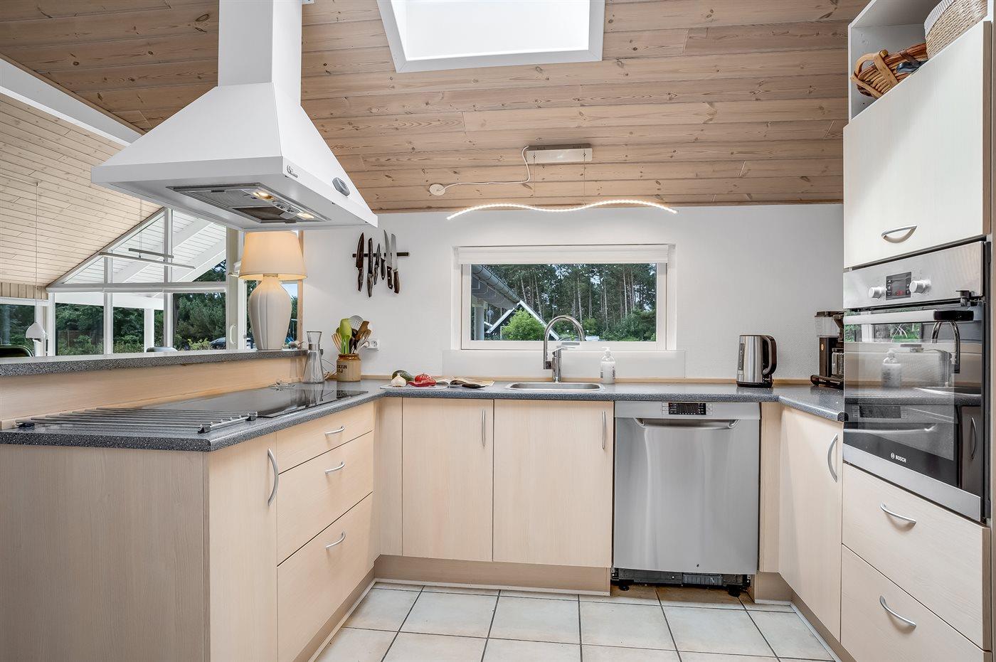 Die Küche ist mit Kühlschrank ausgestattet. Außerdem gibt es 4 Keramik-Kochfelder, Umluftofen, Mikrowelle sowie Geschirrspüler.