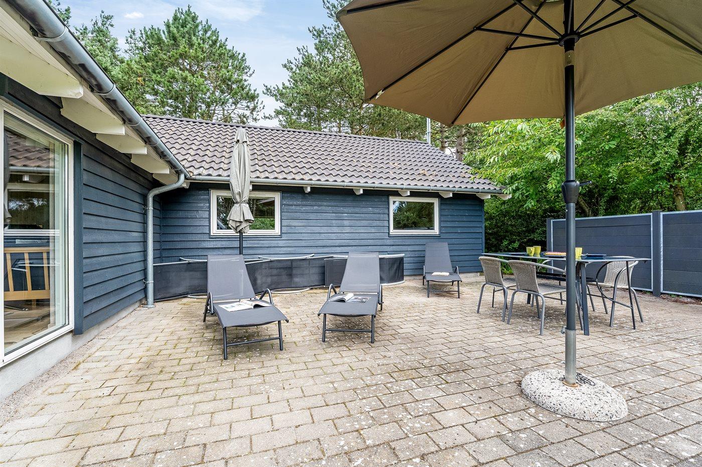 Auf der schönen, großen Terrasse des Hauses, wo man selbst wählen kann, ob man im Schatten oder in der Sonne sitzen möchte, kann man die hellen Sommertage genießen indem man rund um den Gartentisch sitzt und plaudert oder leckere Mahlzeiten auf dem Grill zubereitet. Auf dem Grundstück gibt es Parkmöglichkeiten für 4 PKW’s.