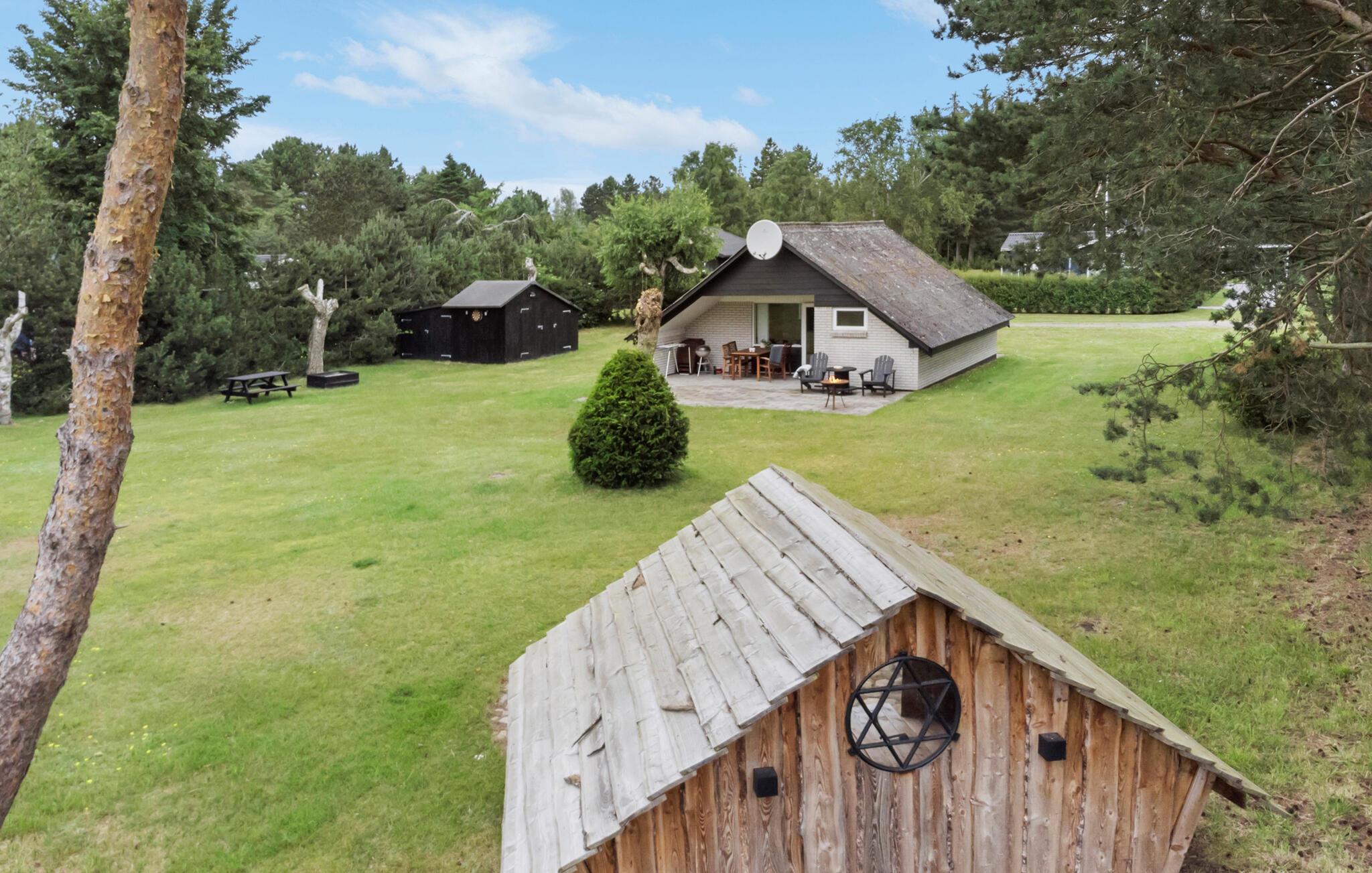 Der Außenbereich des Ferienhauses lädt dazu ein, zahlreiche schöne Stunden im Freien zu verbringen. Genießen Sie die Sonne auf der Terrasse, entspannen Sie im Schatten hochgewachsener Bäume und lassen Sie einen wunderbaren Tag mit Essen vom Grill ausklingen.
