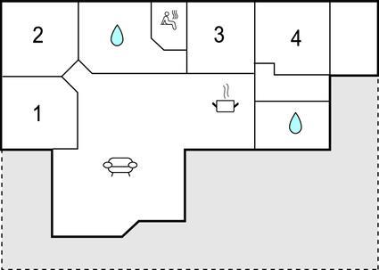 Badezimmer (nr. 1) - WC. Warmes und kaltes Wasser. Dusche