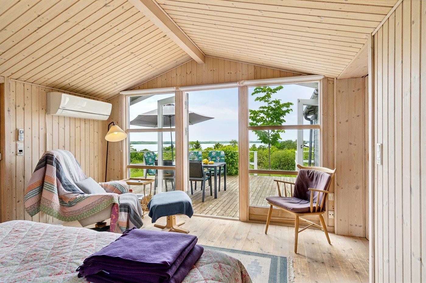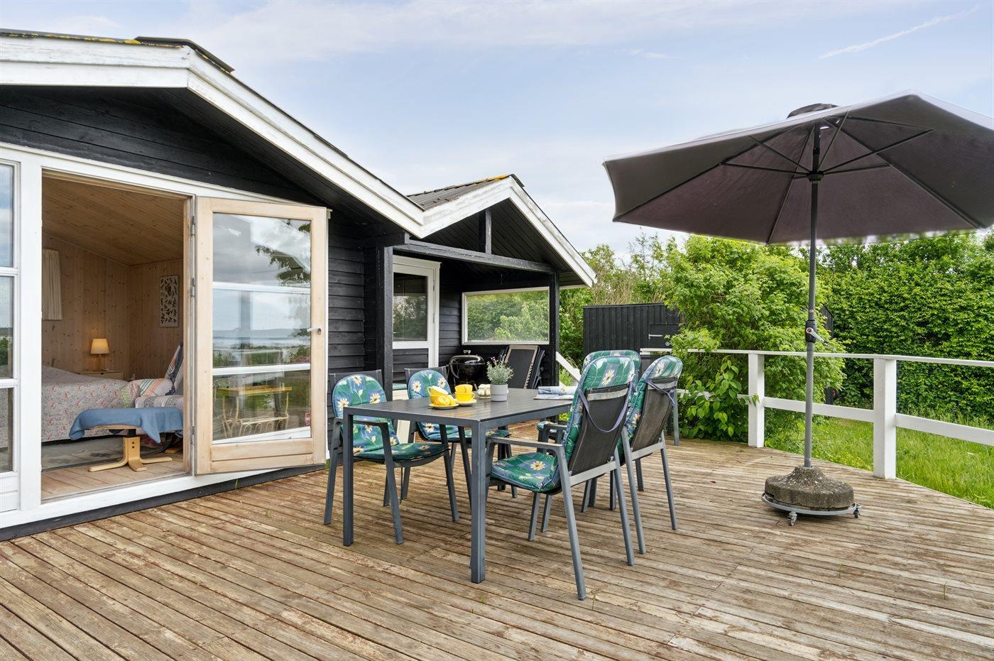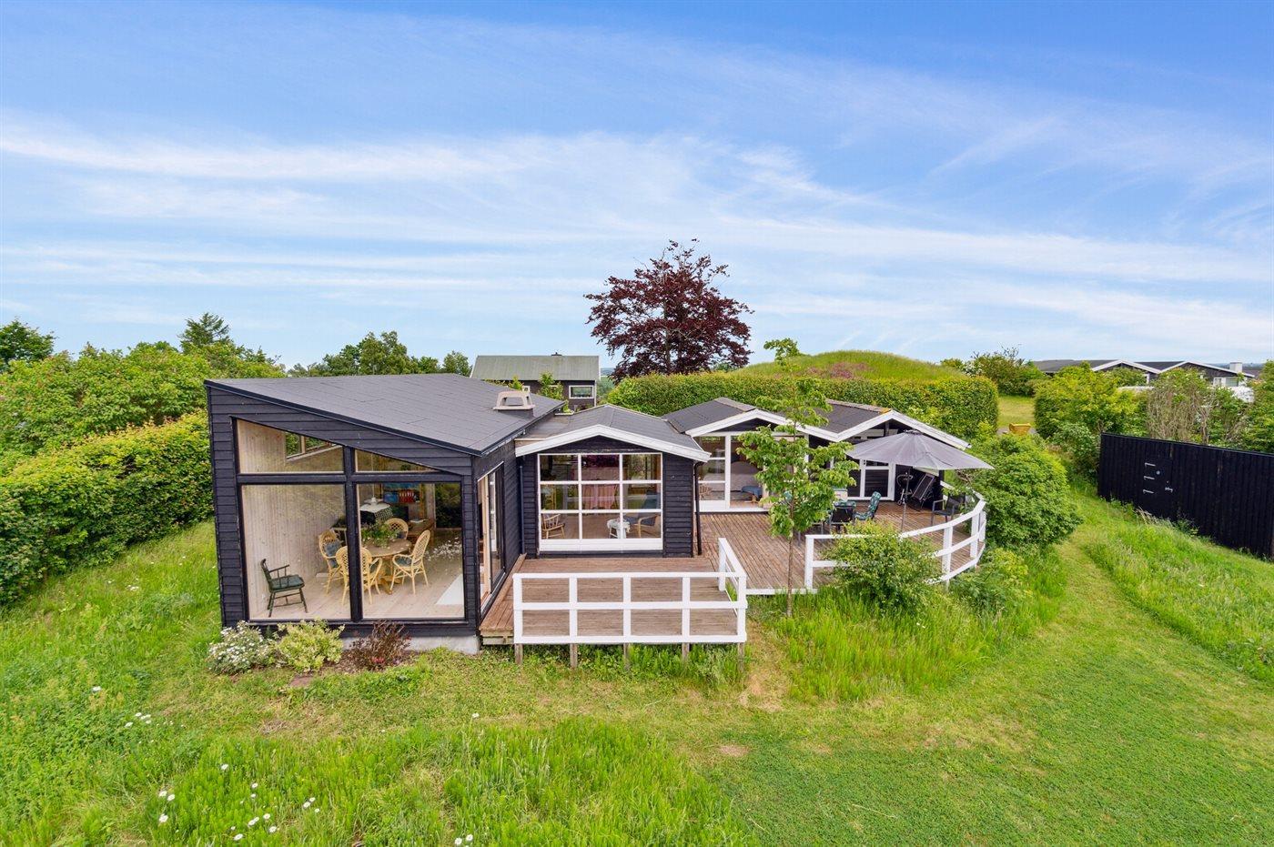 Kleines Ferienhaus mit herrlichem Fjordblick und großer Terrasse, ideal für Ruhe und Naturerlebnis in Dänemark.