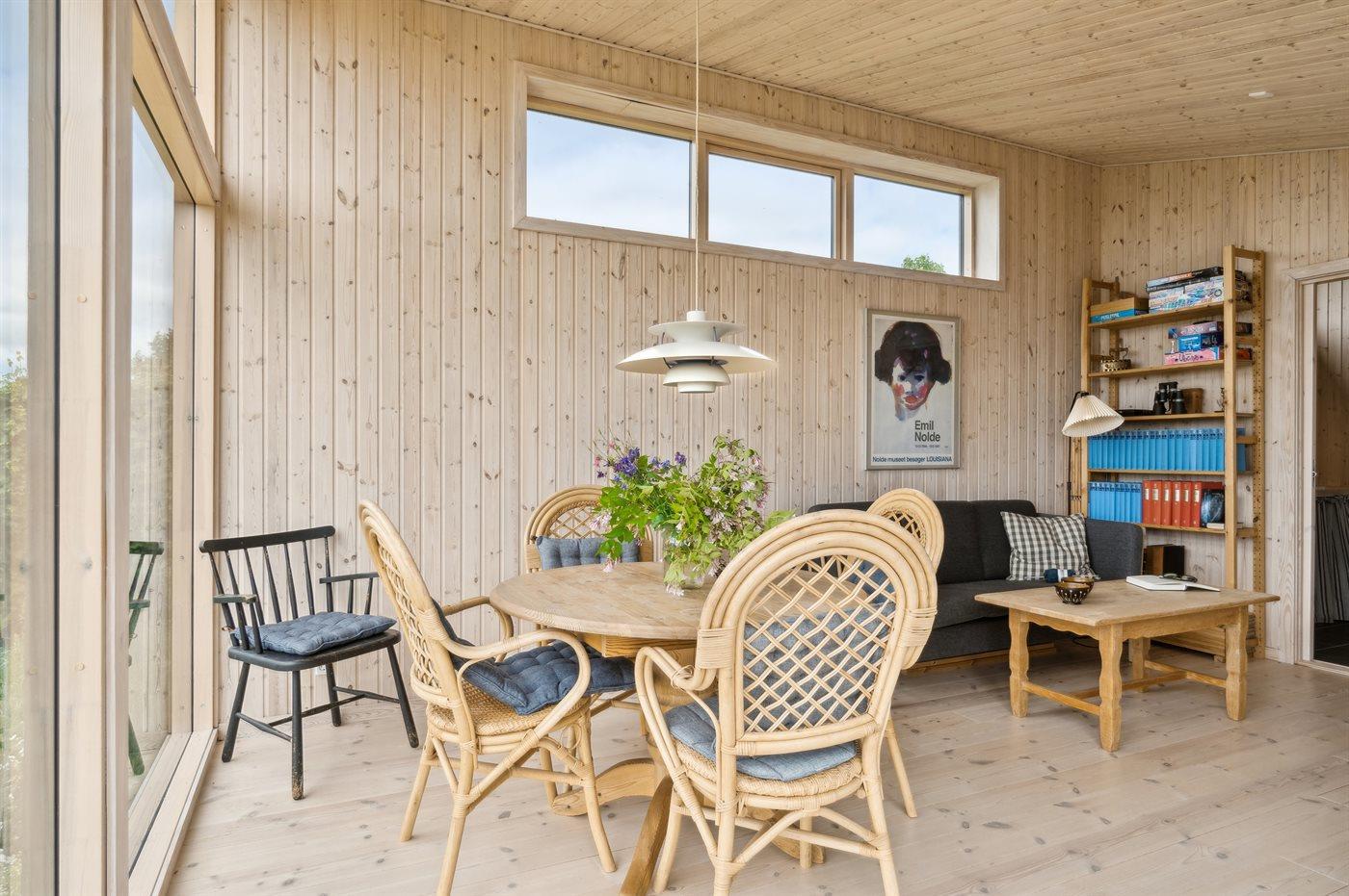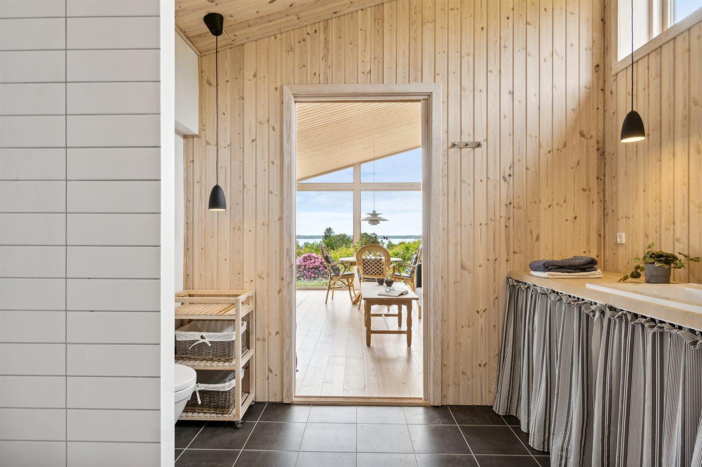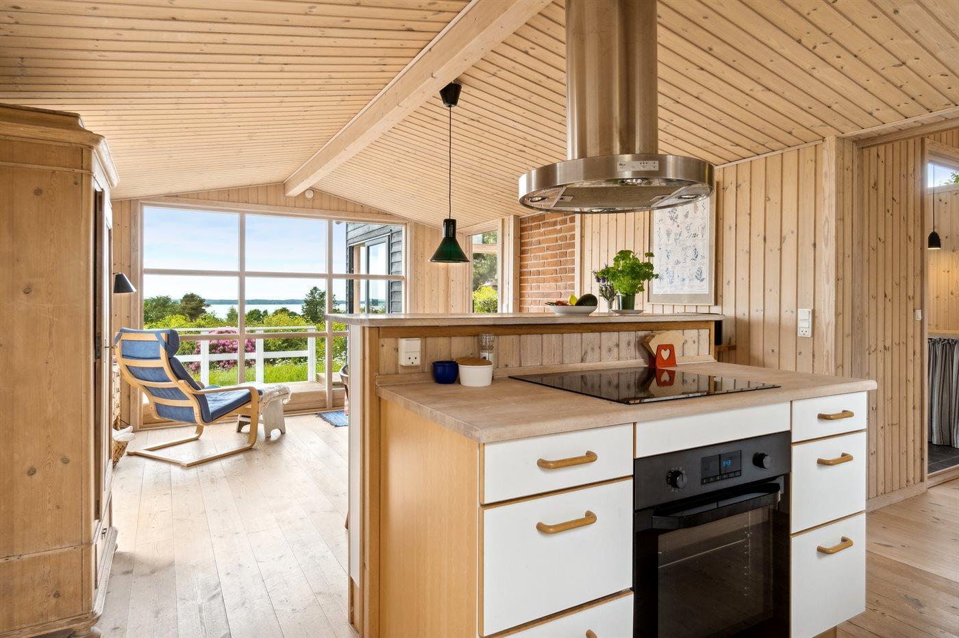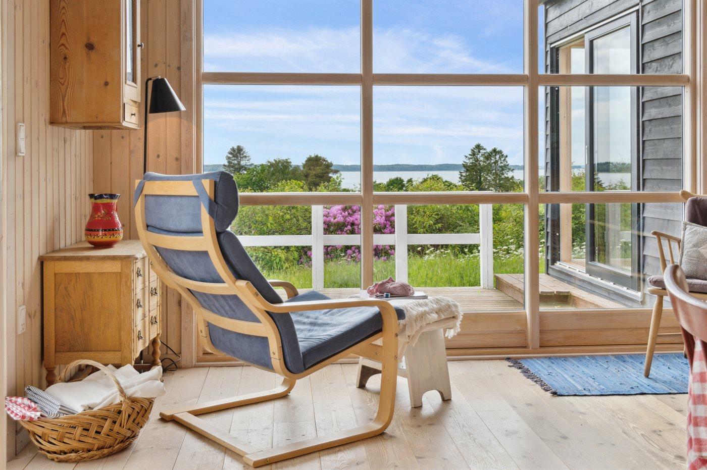 Kleines Ferienhaus mit herrlichem Fjordblick und großer Terrasse, ideal für Ruhe und Naturerlebnis in Dänemark.