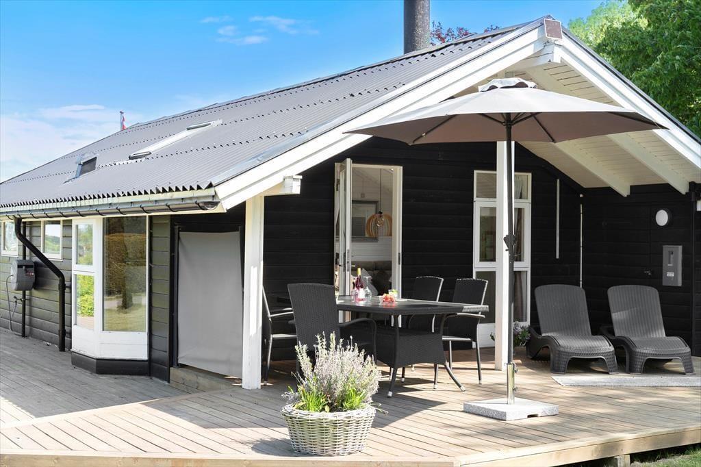 Der Garten rund um das Ferienhaus ist eine kleine Oase der Ruhe und Entspannung. Die großzügige Terrasse lädt dazu ein, lange Mahlzeiten im Freien zu genießen oder einfach die Sonne zu tanken. Eine kleine Rutsche und eine Schaukel sorgen für Unterhaltung für die jüngsten Gäste, während die natürliche Umgebung eine entspannte Atmosphäre schafft. Gönn dir einen ruhigen Moment im Schatten der Bäume oder mach einen Spaziergang zum Fjord, wo du das glitzernde Wasser bewundern und die Stille genießen kannst.