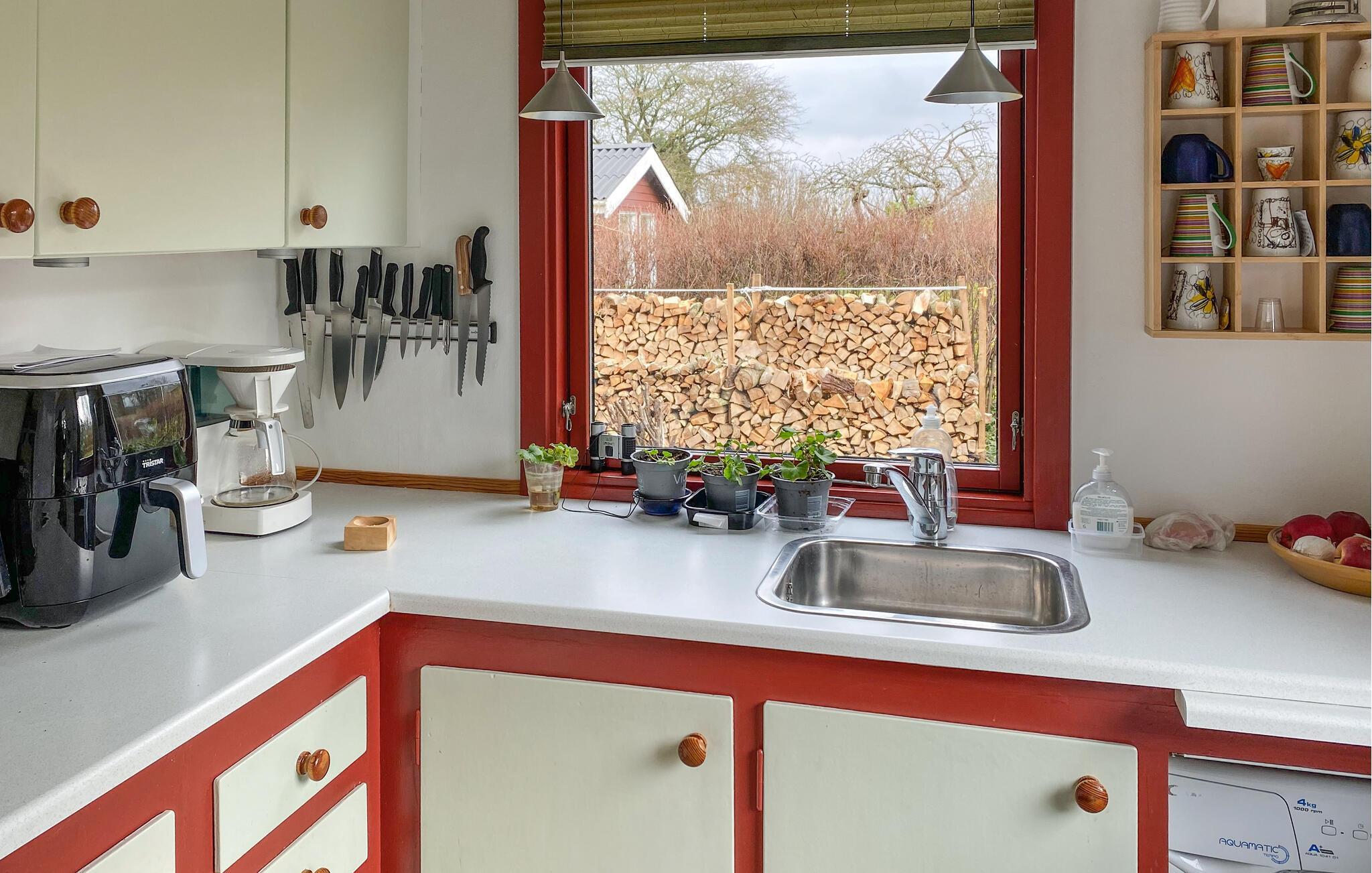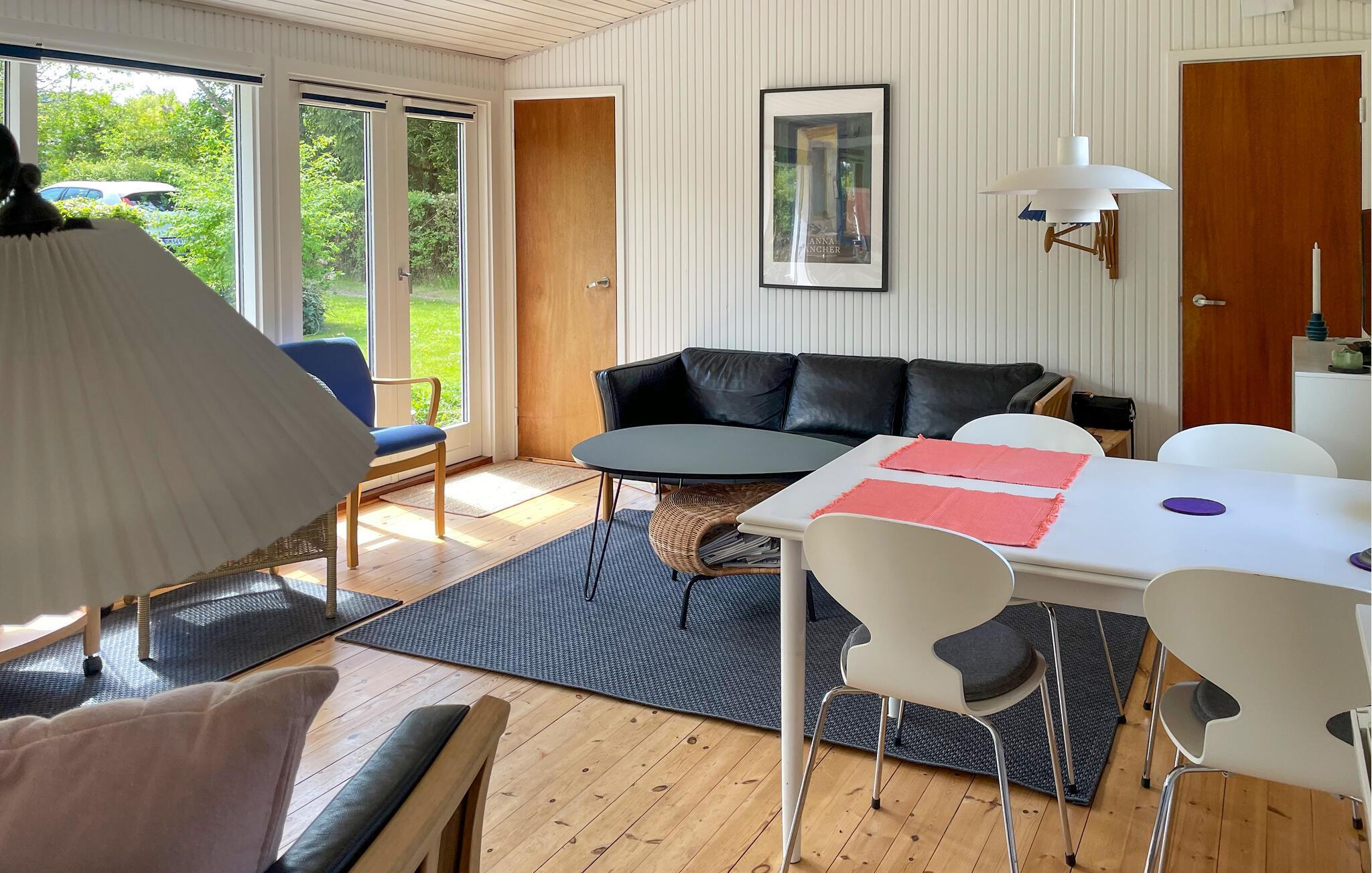 Verbringen Sie eine entspannte Auszeit in diesem Ferienhaus ganz in der Nähe des Roskilde Fjords. Hier erwartet Sie eine friedliche Atmosphäre, umgeben von Natur und Ruhe. Richten Sie sich im hellen Wohn- und Essbereich ein, der mit Holzboden, großen Fenstern und stilvoller Einrichtung ein angenehmes Wohngefühl schafft. Nehmen Sie Platz auf dem Sofa oder in den gemütlichen Sesseln und lassen Sie den Blick nach draußen schweifen. Bereiten Sie Ihre Mahlzeiten in der charmanten Küche mit Blick in den Garten zu. Genießen Sie das gemeinsame Essen am Esstisch und verbringen Sie entspannte Abende bei Spielen oder einem guten Buch.