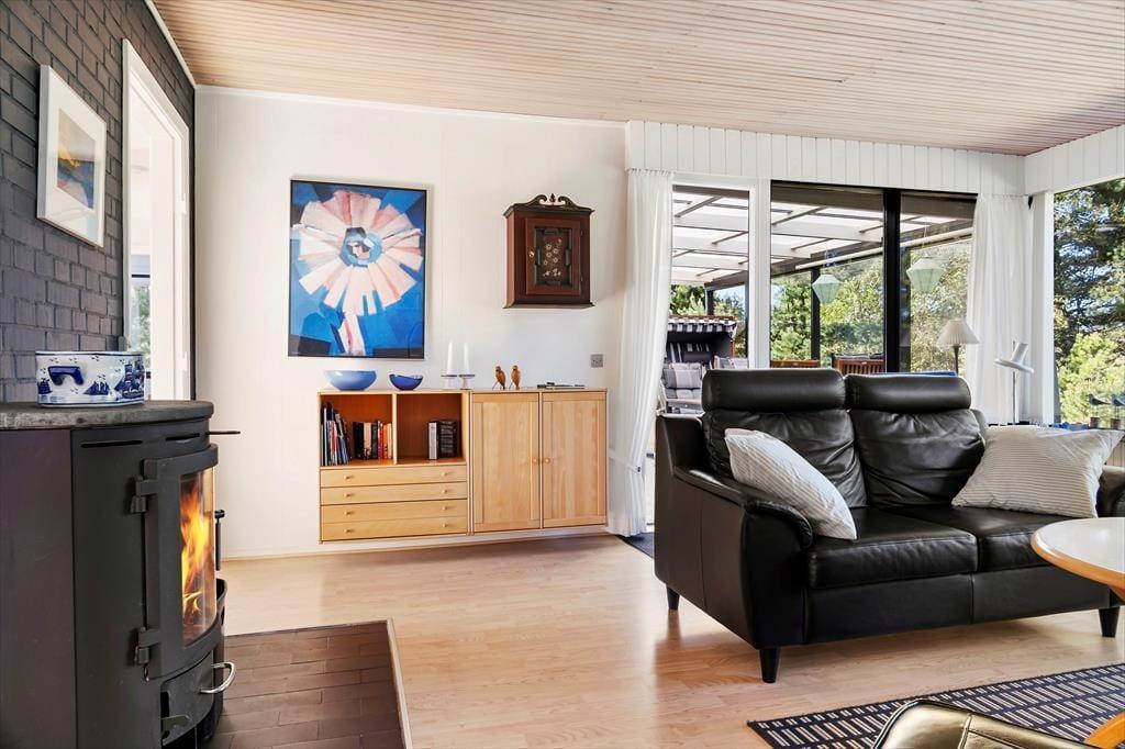 Seit 1968 steht dieses Ferienhaus hier in der schönen Umgebung, doch in der Zwischenzeit hat sich einiges getan. Es wurde im Laufe der Jahre sorgfältig gepflegt und modernisiert – unter anderem mit einem schönen Badezimmer mit Fußbodenheizung, bequemen Betten und viel Schrankplatz. Im Inneren sind die 74 m² Wohnfläche sinnvoll aufgeteilt in drei Schlafzimmer, das bereits erwähnte Badezimmer und einen schönen Aufenthaltsraum mit Wohnzimmer und offener Küche. Hier kannst du es dir auf den Sofas so richtig gut gehen lassen und den Brennofen anheizen, wenn es draußen kühl ist. Falls du gute Unterhaltung möchtest, kannst du auf dem Flachbildfernseher durch 30 Kanäle zappen, es sei denn, du möchtest einfach nur den Blick ins Grüne durch die großen Wohnzimmerfenster genießen.