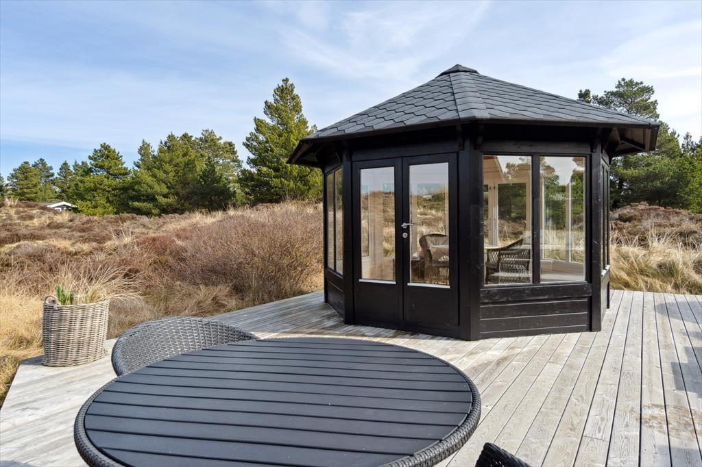 Den schönen Außenbereich des Hauses kannst du nicht nur an heißen Sonnentagen genießen, denn über das tolle Terrassenambiente hinaus gibt es auf dem 3000 m² großen Grundstück ein Wildnisbad und einen Pavillon, die beide auf ihre Weise zur Verschönerung des Urlaubslebens beitragen. Wenn die Frühlingssonne scheint, kannst du es dir mit einer guten Tasse Kaffee im Pavillon gemütlich machen, und im Sommer kannst du mehr oder weniger darin wohnen, mit freiem Blick über das heidebewachsene Naturgrundstück. Am Abend, wenn die Sterne am Himmel schimmern, fühlt es sich magisch an, im warmen Wildnisbad zu sitzen.