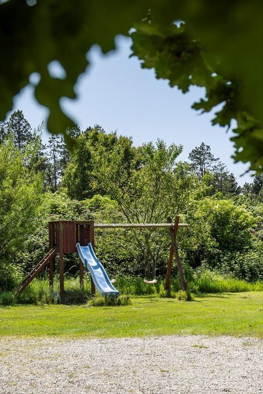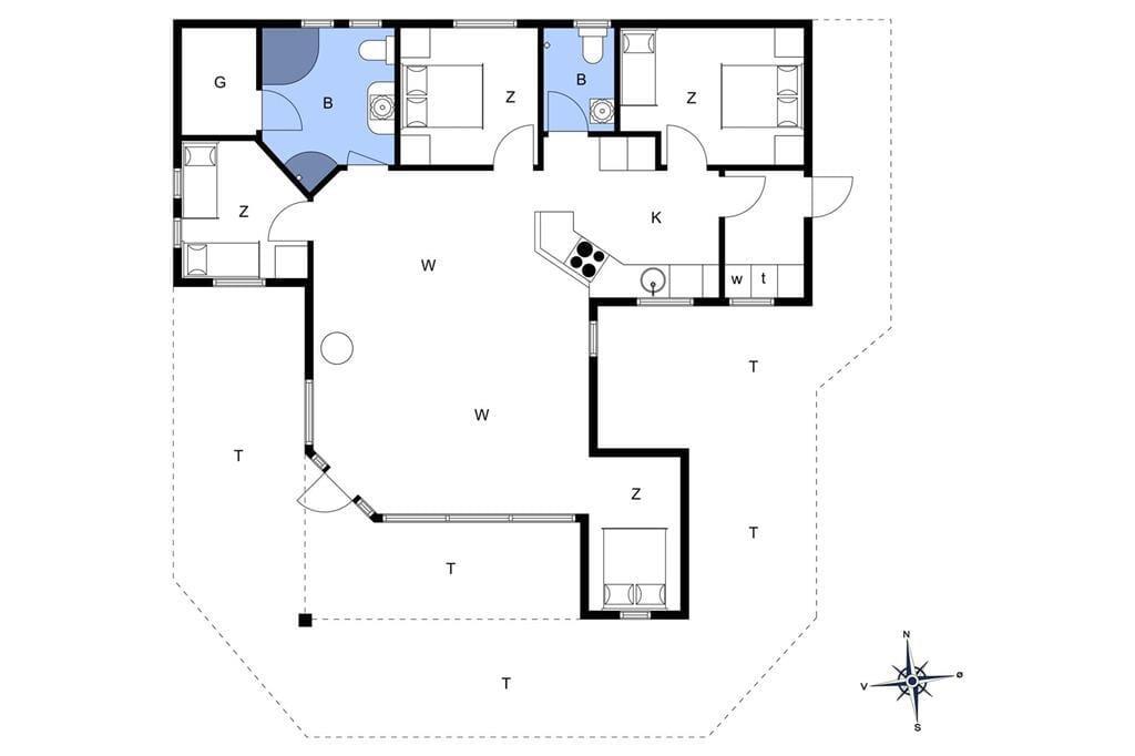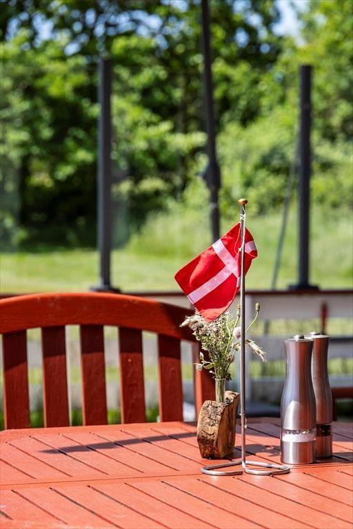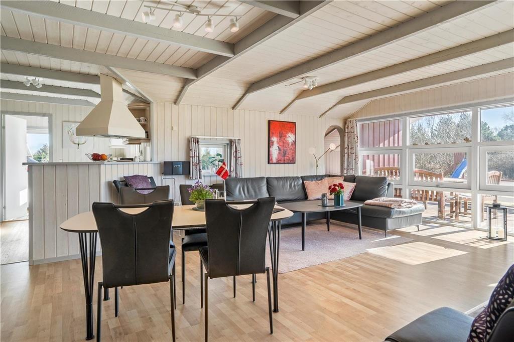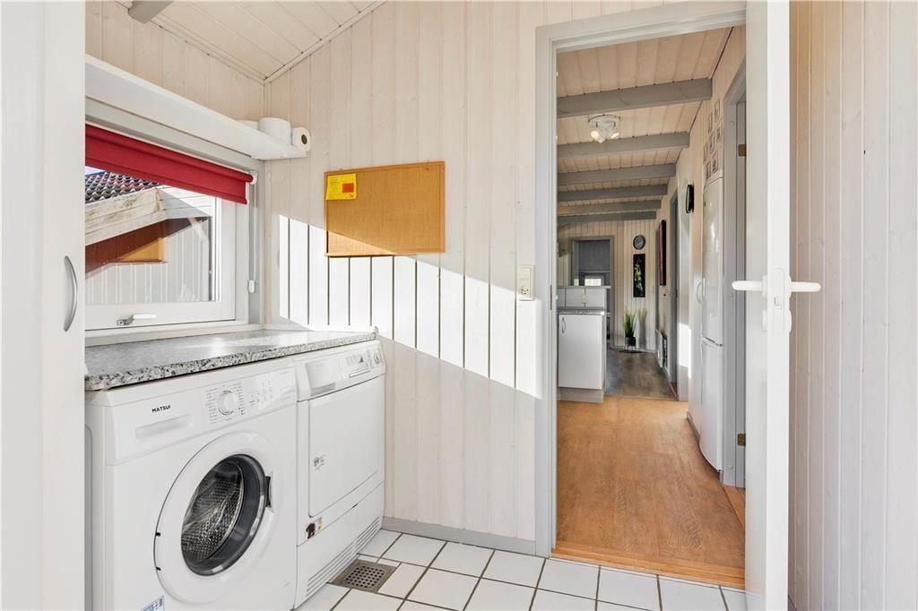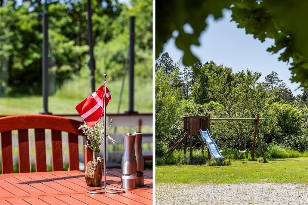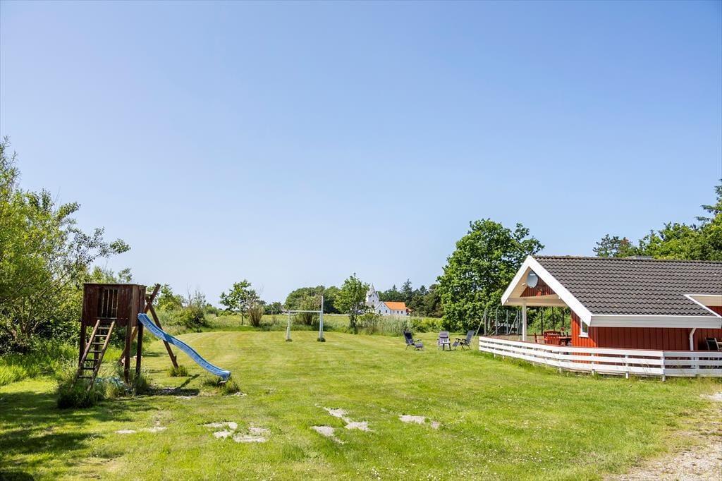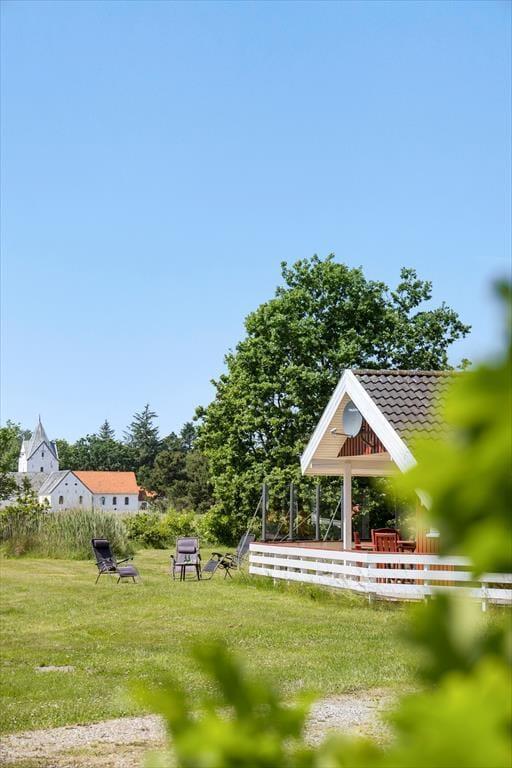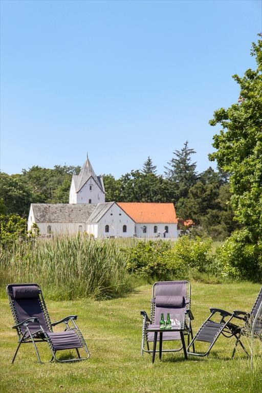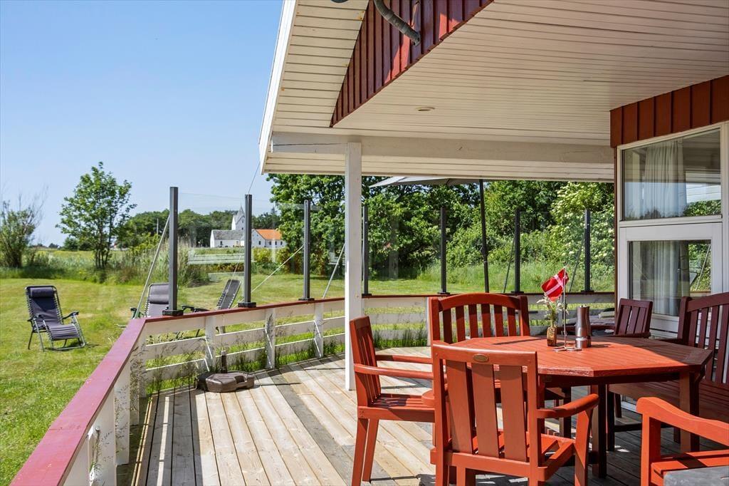Auf dem 2900 m² großen Grundstück haben Sie viel Platz zum Spielen und Entspannen. Neben der Rasenfläche gibt es Schaukeln für die verspielten Familienmitglieder und die sonnigen Stunden lassen sich natürlich auch gut auf der Terrasse verbringen, die sich um drei Seiten des Hauses schmiegt. Ein Teil der Terrasse ist überdacht, sodass Sie problemlos draußen sitzen und die Sommerabende genießen können, auch wenn der Tau fällt. Auf der anderen Seite der Grundstücksgrenze liegen Wiesen, so dass Sie Richtung Westen die Aussicht auf Rømøs schöne Kirche und die offene Landschaft genießen können.