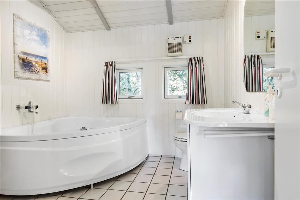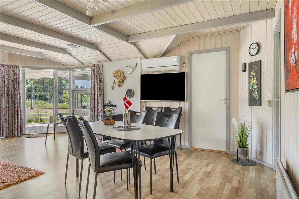 Am Ende eines kleinen, geschlossenen Weges auf einem großen Grundstück in Kromose erwartet Sie dieses charmante Ferienhaus. Hier können Sie draußen auf der schönen Sonnenterrasse entspannen und drinnen finden Sie sowohl einen Whirlpool als auch eine Sauna in einem der Badezimmer.