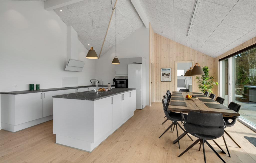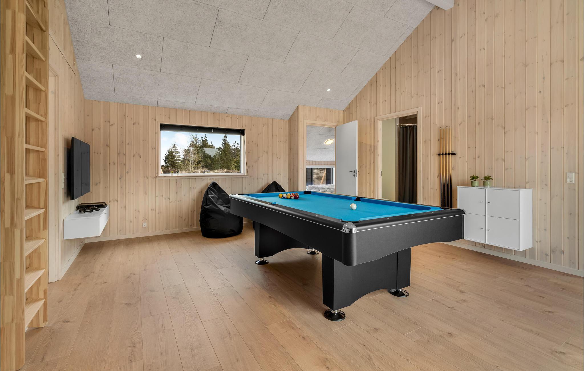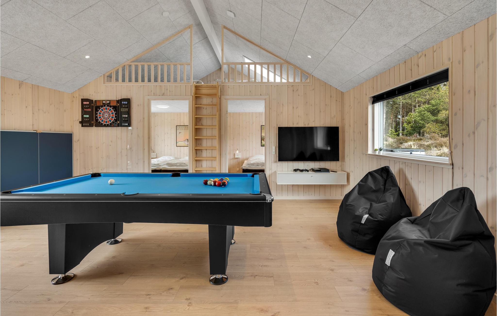 In der schönen Dünenlandschaft von Kromose empfängt Sie dieses großartige Ferienhaus. Hier finden Sie viel Platz, um gemeinsam mit Ihrer Großfamilie oder befreundeten Familien einen abwechslungsreichen Urlaub zu verbringen. Erholung, Spiel, Spaß und gemeinsame Zeit stehen hier im Vordergrund. Das wunderschöne Haus und der einladende Garten bieten Ihnen Aktivitäten zu jeder Jahreszeit und Wetterlage. Im Inneren können Sie im großen Wohnraum zusammenkommen, Ihre Lieblingsgerichte zaubern, am Esstisch Karten Spielen oder auf dem Sofa, bei einem prasselnden Kaminfeuer, einen unterhaltsamen Film schauen. Für Spielspaß steht Ihnen im Aktivitätsraum Billard, Tischtennis, Darts und Spielkonsole zur Verfügung und wird die Kinderaugen zum Leuchten bringen.