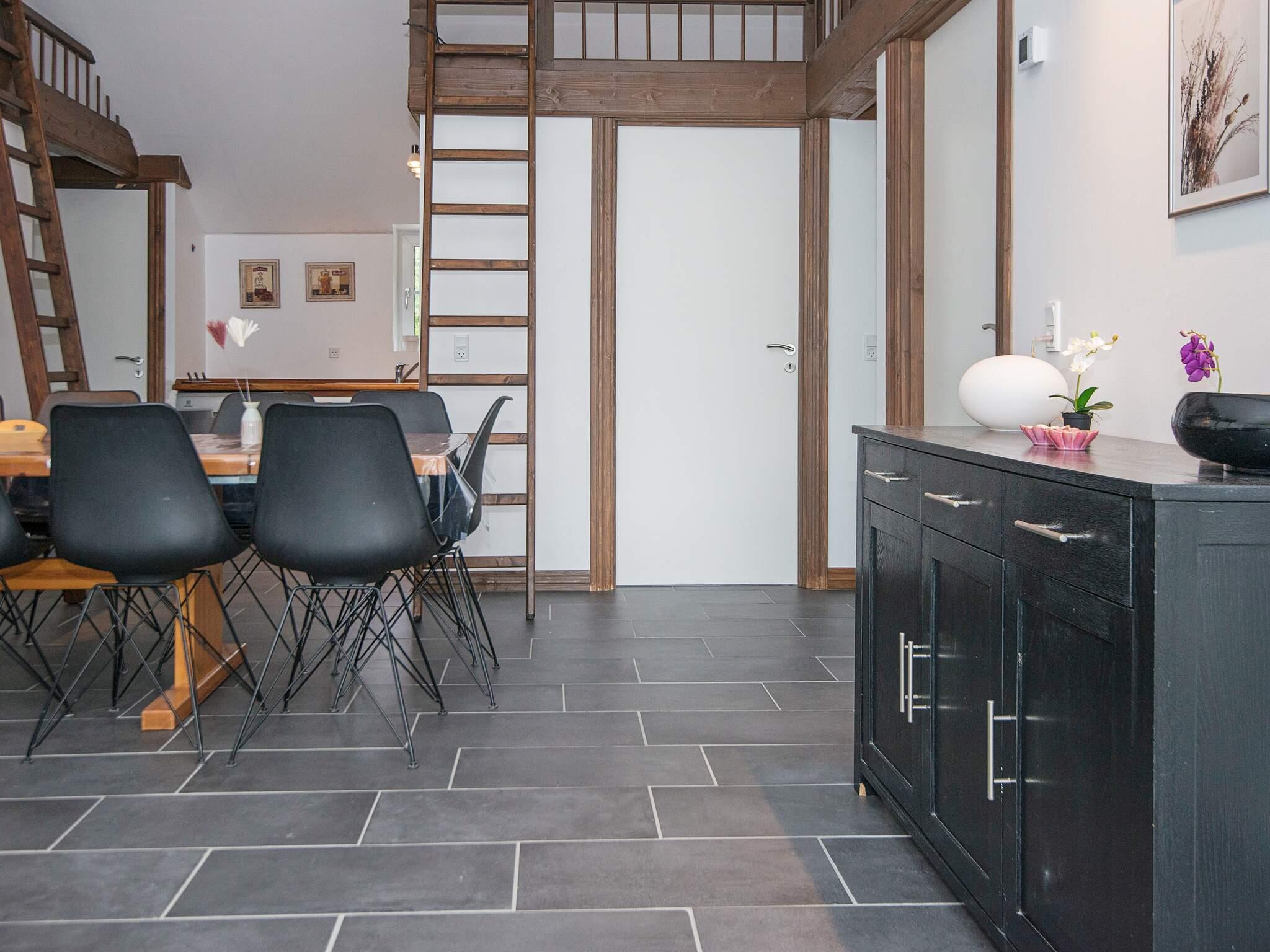 Im Außenbereich findet man mehrere geschützte Sitzplätze im Freien für sonnige Tage und lauschige Grillabende. Es gibt auch eine große, teilweise überdachte Terrassenfläche.