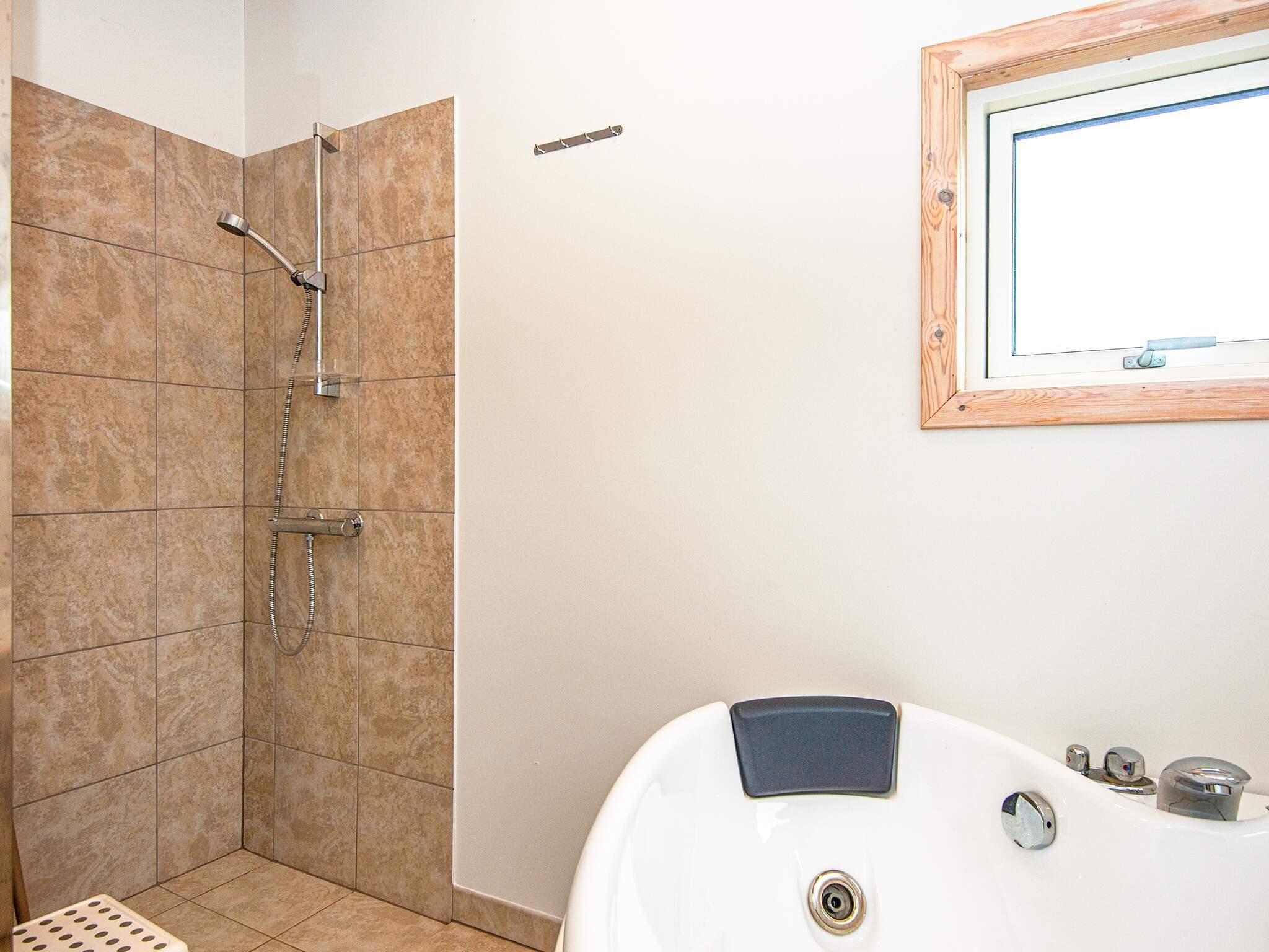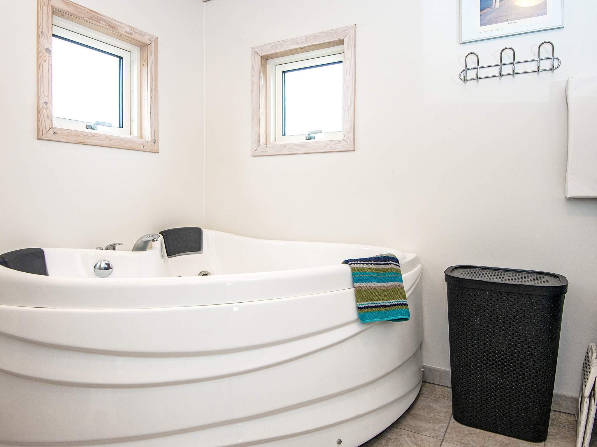 Unweit des Seeufers am Kvie Sø liegt dieses Ferienhaus mit Whirlpool. Es steht auf einem eingezäunten Grundstück von fast 900 m2 Größe. Im Haus gibt es ein Schlafzimmer mit einem Doppelbett und einem Einzelbett, ein zweites Zimmer mit einem Doppelbett und einem Babybett sowie ein drittes Zimmer mit zwei Einzelbetten. Darüber hinaus gibt es eine Küche in offener Verbindung zum Essbereich und zum Wohnzimmer. Badezimmer mit Whirlpool und angenehmer Fußbodenheizung.