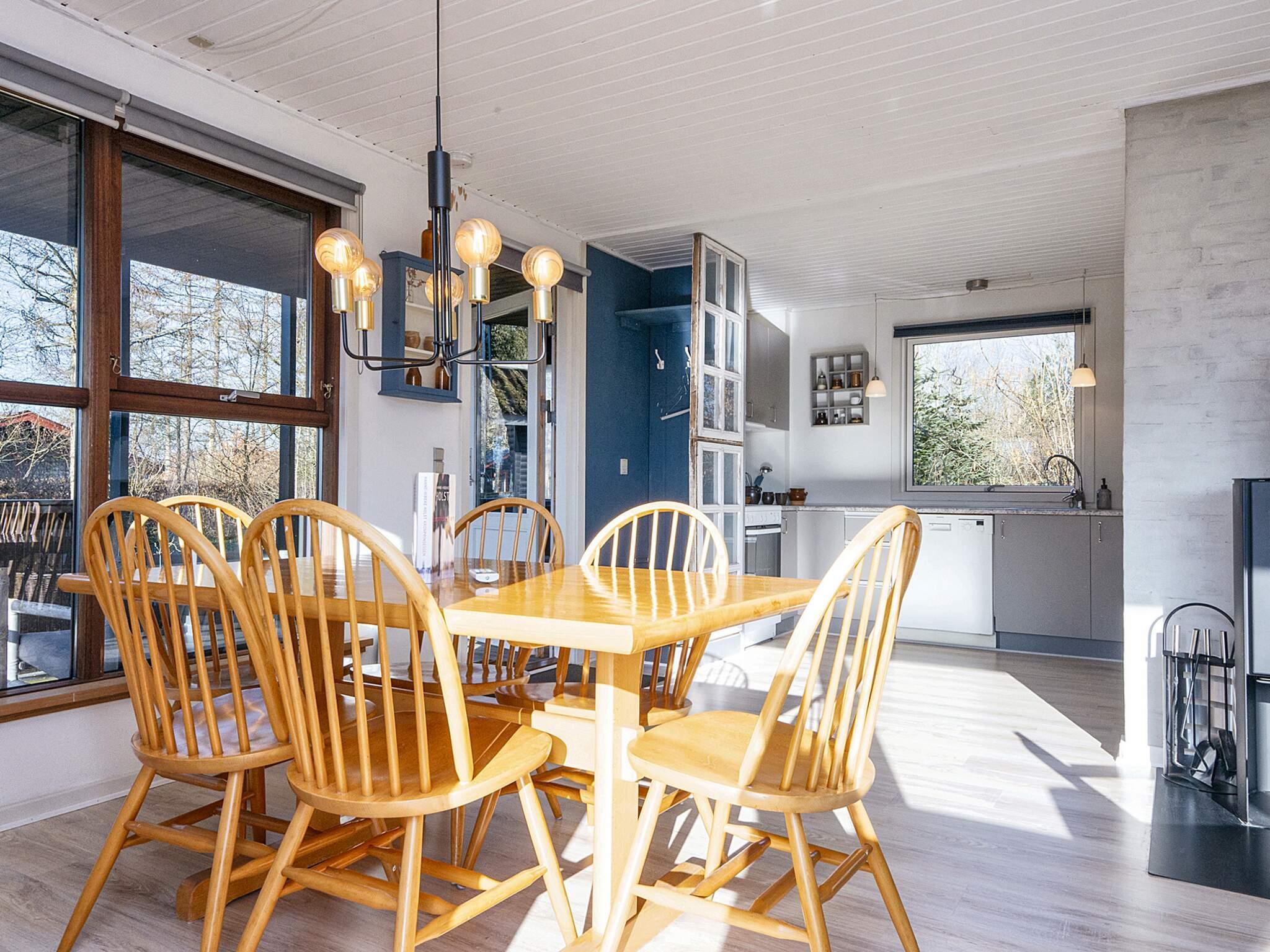 Die große und gut ausgestattete Küche bietet ein Cerankochfeld, einen Geschirrspüler, eine Mikrowelle, eine Dunstabzugshaube und einen Kühlschrank mit Gefrierfach für die Zubereitung von Mahlzeiten zu Hause. Das helle, offene Wohn- und Esszimmer bietet direkten Zugang zur teilweise überdachten Terrasse mit hochwertigen dänischen Möbeln. Kostenloses WLAN ist im gesamten Haus verfügbar, ebenso wie Chromecast zum Streamen Ihrer eigenen Unterhaltung. Für Komfort zu jeder Jahreszeit ist das Wohnzimmer mit einer energieeffizienten Luft-Luft-Wärmepumpe sowie einem gemütlichen Holzofen ausgestattet.