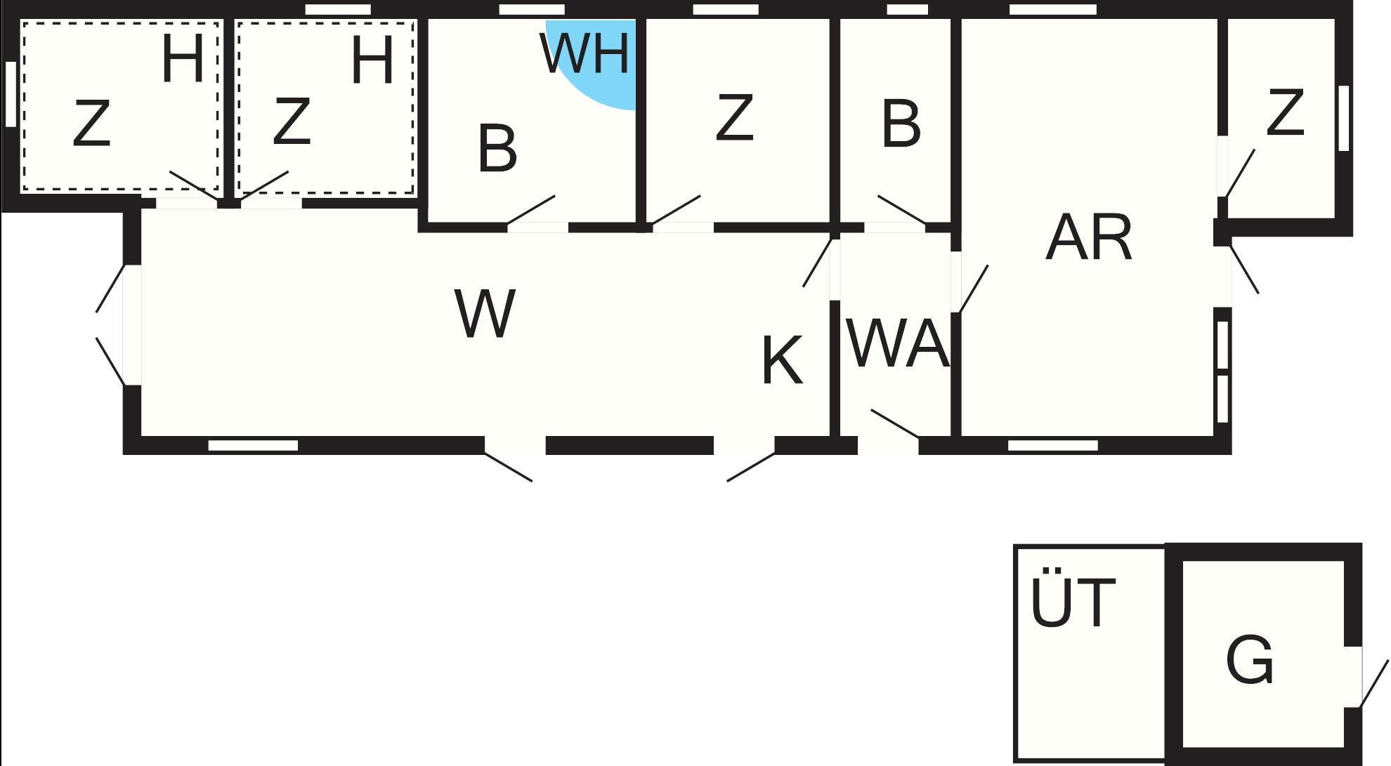 4 Schlafz.: (1DB)+(1DB)+(1DB)+(2B), Kinderbett