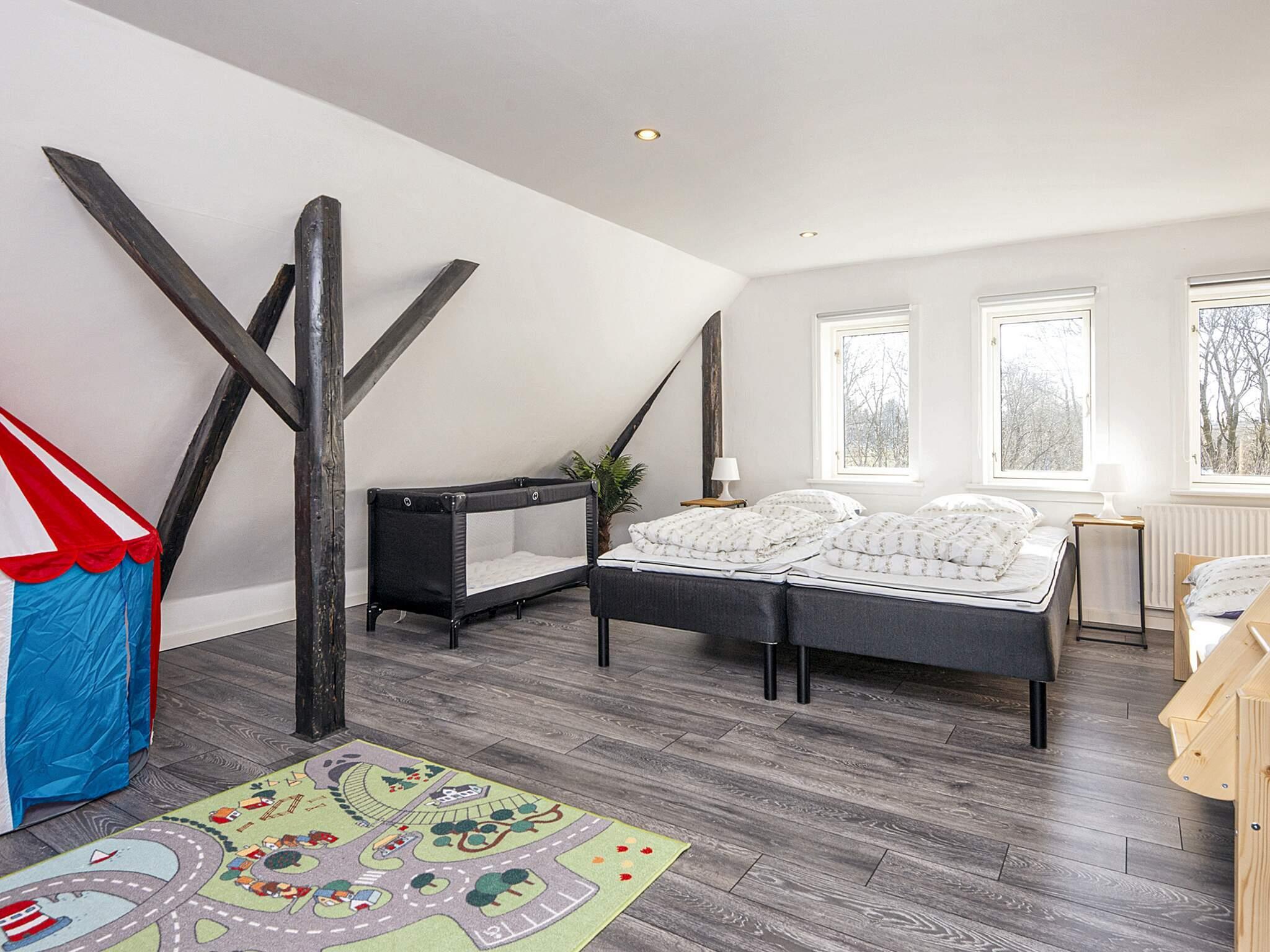 Am Kvie-See finden Sie dieses renovierte, 315 m² große Ferienhaus für 16 Personen mit Wildnisbad in einem großen, abgeschiedenen und eingezäunten Garten von 2000 m².