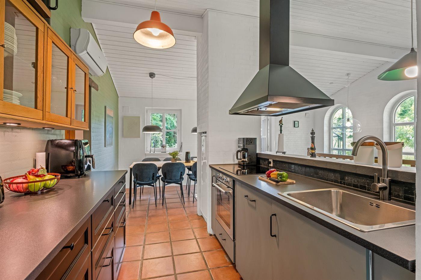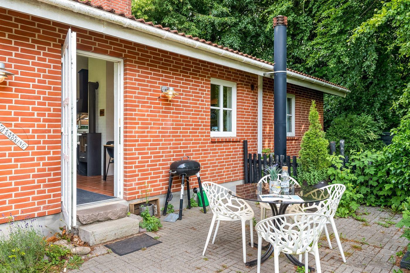 Das Haus liegt auf einem 19.000 m2 großen Naturgrundstück, jedoch in unmittelbarer Nähe der kleinen Stadt Næsbjerg. Hier gibt es Ruhe und Natur pur. Man kann die Natur auf der Terrasse und in der Umgebung um das Haus herum genießen, und wenn das Wetter nicht so gut ist, kann man die Ruhe und den Urlaub im Gewächshaus genießen.
