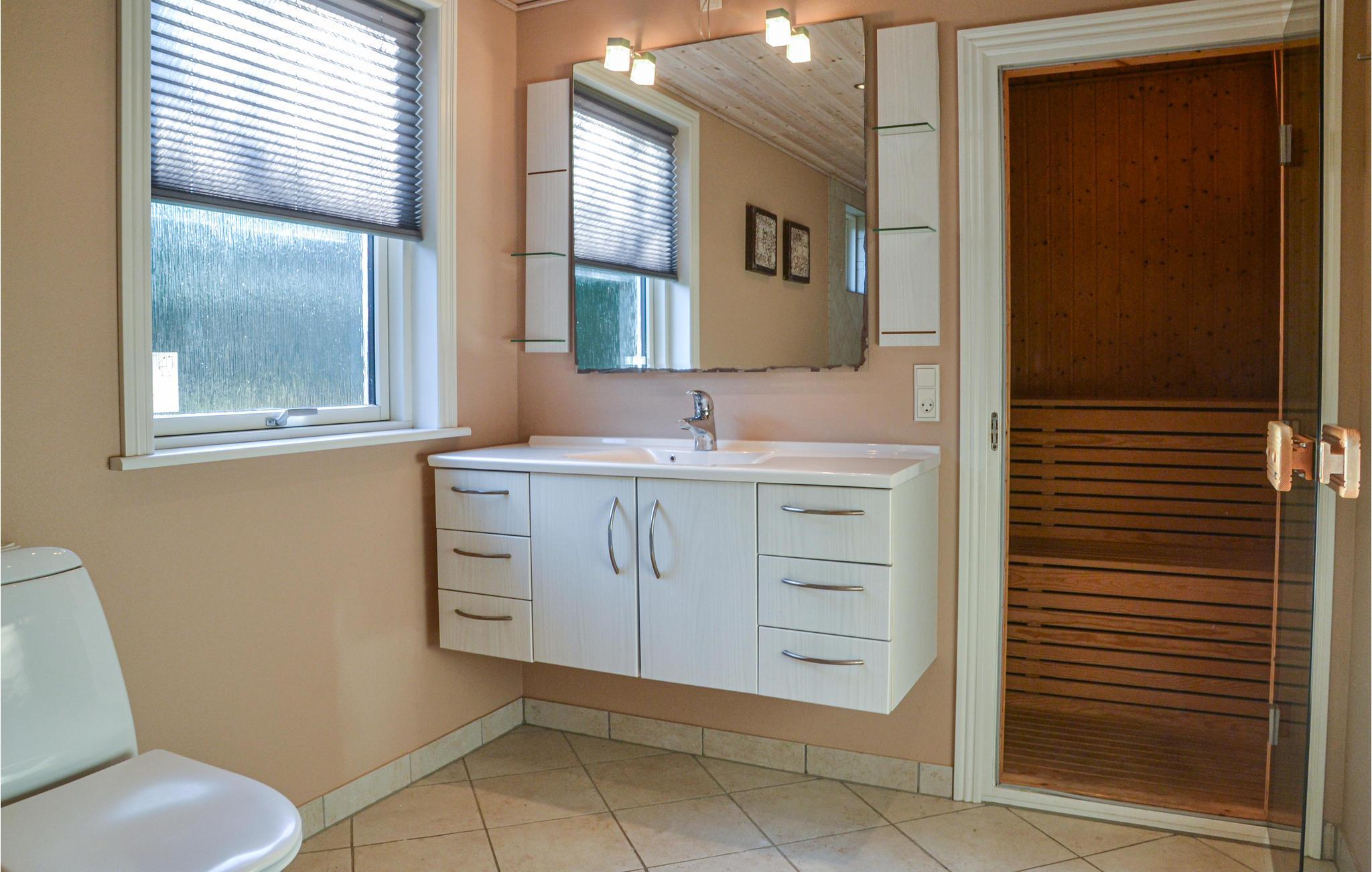 Schönes und gepflegtes Ferienhaus, nur wenige Minuten Fußweg vom sehr kinderfreundlichen Badestrand und Spielplatz am See Kvie Sø. Das Haus ist praktisch eingerichtet, u.a. mit zwei Bädern, von denen das eine einen großen Whirlpool und eine Sauna besitzt, außerdem drei gute Schlafzimmer mit Doppelbetten. Die geräumige Wohnküche ist gemütlich eingerichtet und hat einen Zugang zur Terrasse, auf der Sie entspannen und den Urlaub genießen können. Der Grill steht für die Zubereitung leckerer Urlaubsmahlzeiten bereit, die Sie grillen können, während die Kinder im Garten spielen.