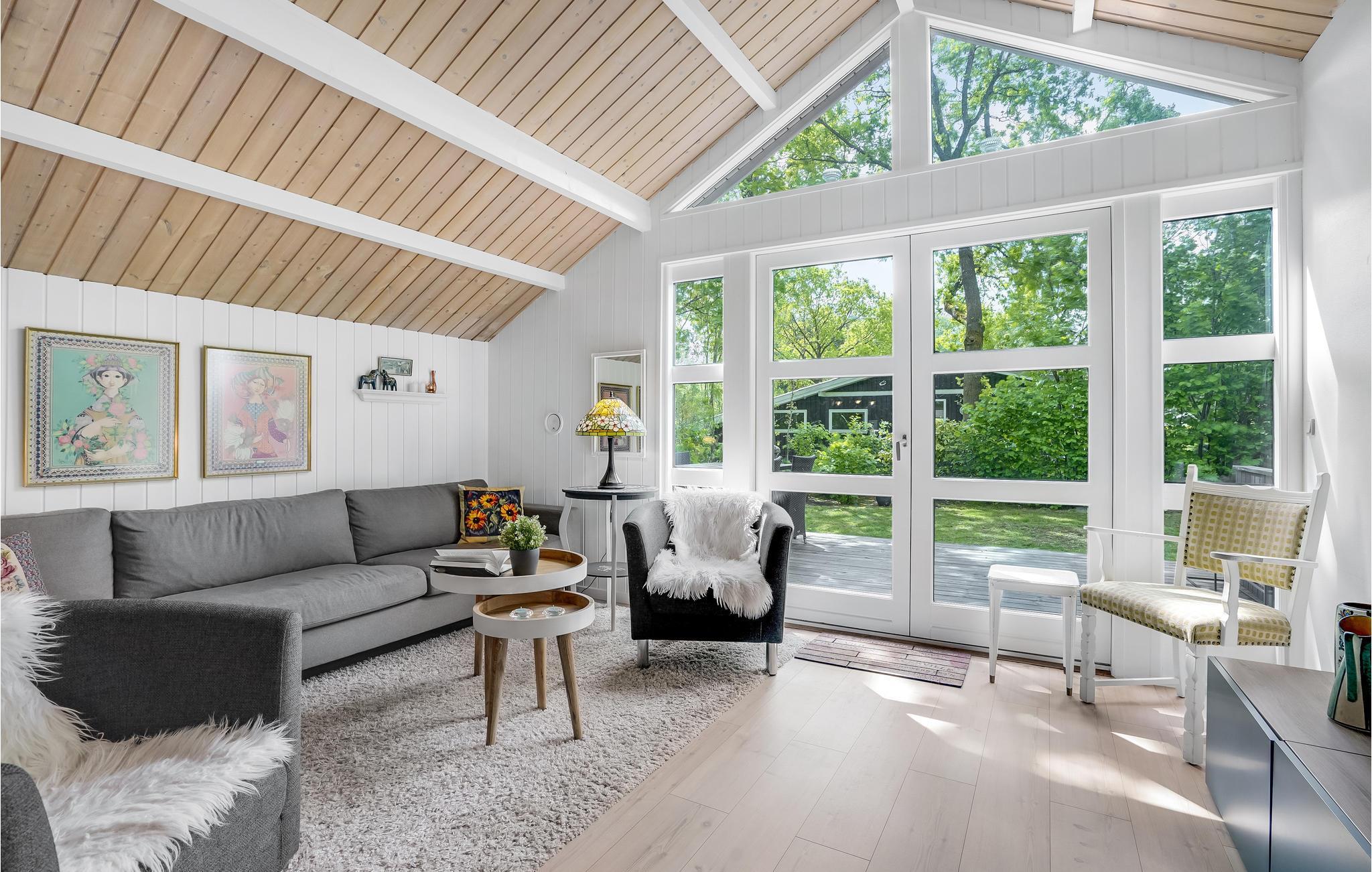 Ein sehr persönlich eingerichtetes Ferienhaus mit hohem Dach und großem Naturgrundstück.