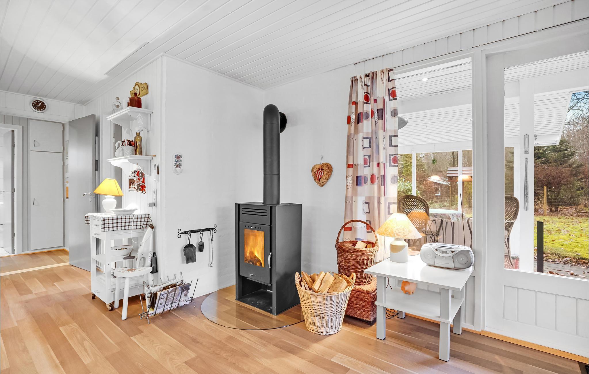 Ein gemütliches Familienferienhaus nahe dem Kvie Sø mit Kamin, eingezäuntem Garten und moderner Ausstattung für erholsame Tage.