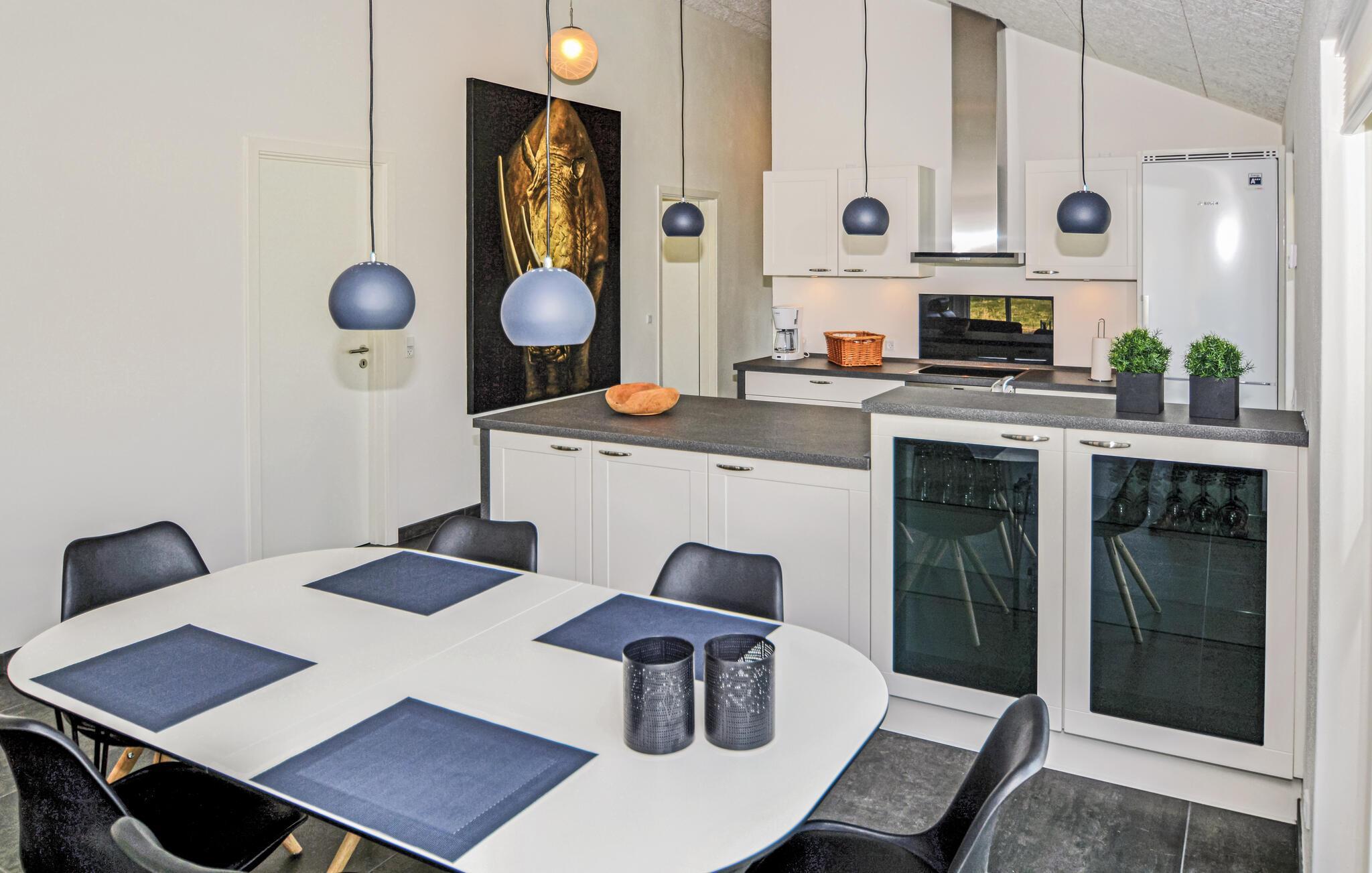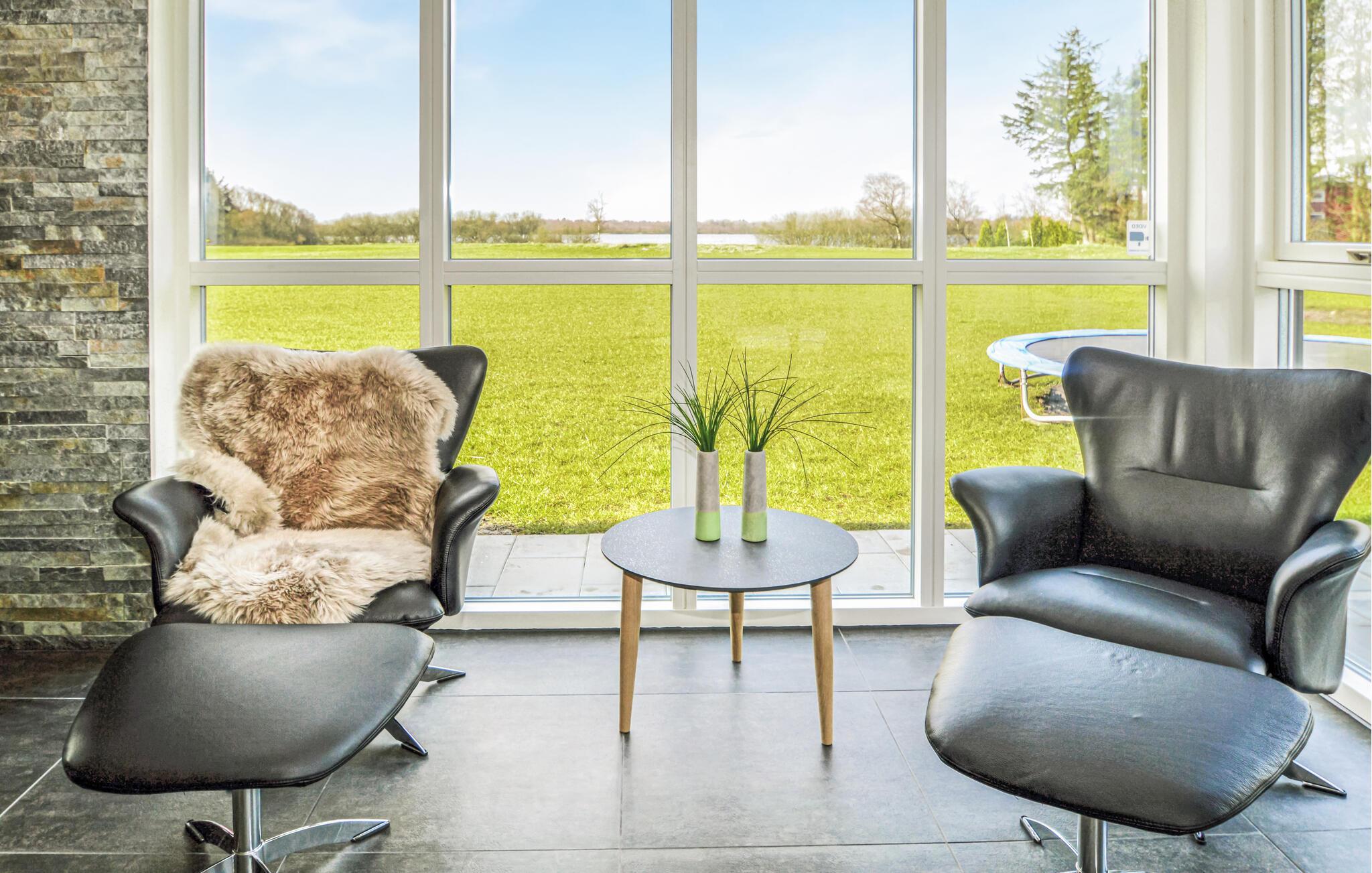 Modernes Ferienhaus mit Seeblick, Aktivitätsraum und gemütlichem Kamin in Ansager, Dänemark.