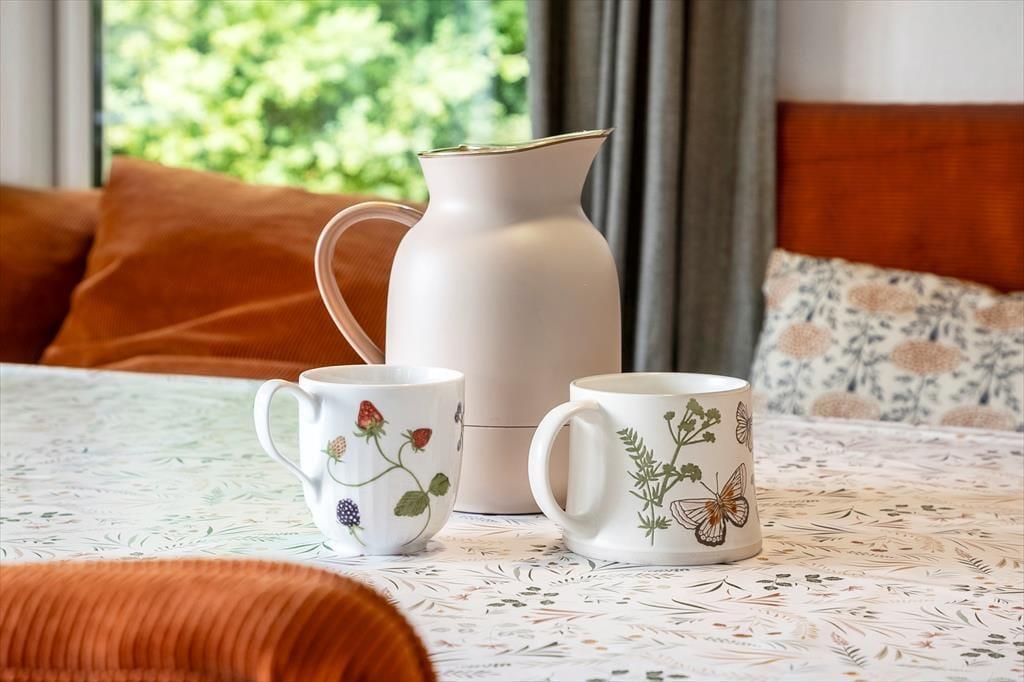 Das charmante Holzhaus ist hell eingerichtet und verbreitet eine Atmosphäre, die zu einem Urlaub im ruhigen Tempo einlädt. Hier ist Platz zum Entspannen und einfach zum Beisammensein – ganz gleich, ob du von langsamen Morgenstunden am Esstisch träumst, einem guten Buch auf dem Sofa oder einem Brettspiel mit der Familie am Abend. Das Wohnzimmer und die Küche sind offen miteinander verbunden, sodass du beim Kochen der Feriengerichte die Gespräche und das Lachen ganz einfach mitverfolgen kannst. Tageslicht durchflutet die Räume, und die entspannte Einrichtung macht es dir leicht, dich vom ersten Moment an wie zu Hause zu fühlen. Mit Platz für acht Gäste eignet sich das Haus auch hervorragend für zwei Familien, eine Freundesgruppe oder mehrere Generationen auf gemeinsamer Reise.