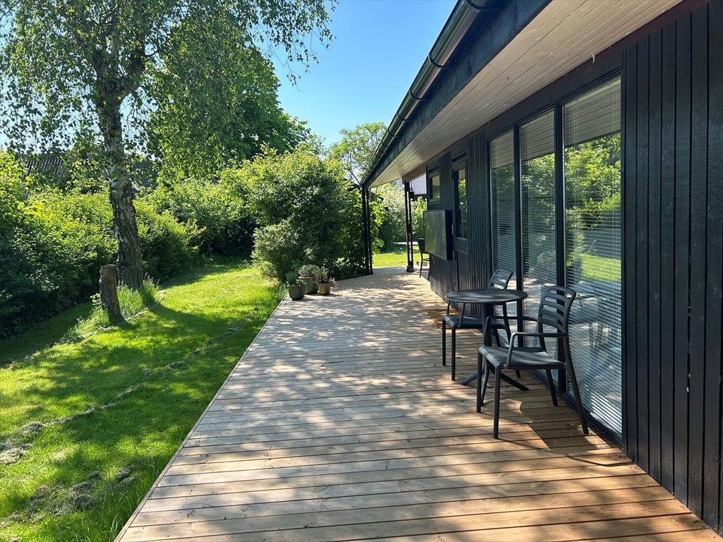 Außen erstreckt sich der Charme des Ferienhauses in die friedliche Natur. Die Lage am Ende einer ruhigen Straße sorgt für eine Oase der Ruhe, in der Sie das Leben mit dem Meer als nächstem Nachbarn genießen können. Die großzügigen Terrassen laden den ganzen Tag zum Entspannen ein – hier können Sie der Sonne von morgens bis abends folgen, ein Glas Wein am Außengrill genießen oder die Familie zu einem Abendessen mit spektakulärem Meerblick versammeln. Der große Garten lädt zum Spielen und Entspannen ein, und nur wenige Schritte vom Haus entfernt finden Sie den Strand mit einem Badepier, perfekten Angelplätzen und der Möglichkeit, Ihre Füße im klaren Wasser zu erfrischen.