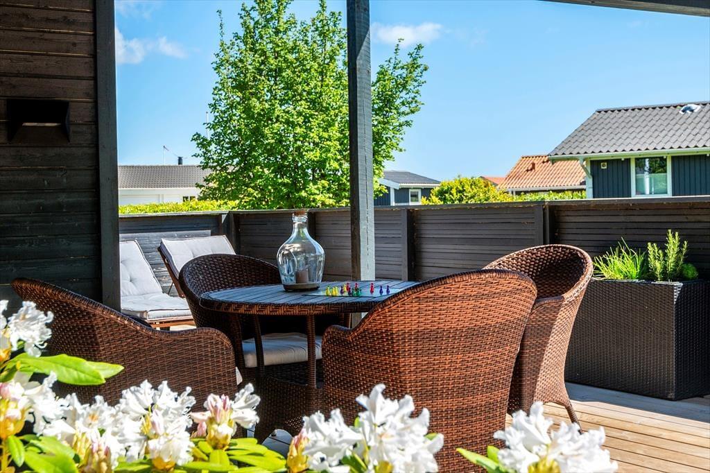 Draußen erwartet Sie eine elegante Terrasse, die Sie dazu einlädt, die frische Luft und die ruhige Atmosphäre dieser Umgebung in vollen Zügen zu genießen. Die überdachte Terrasse mit bequemen Sitzmöbeln bietet den perfekten Rahmen für unvergessliche Momente – sei es beim Morgenkaffee oder beim Abendessen im Sonnenuntergang. Der Grill und der liebevoll gestaltete Außenbereich laden zu geselligen Mahlzeiten unter freiem Himmel ein, während Sie dem Zwitschern der Vögel lauschen. Der gepflegte Garten bietet sowohl sonnige als auch schattige Plätze und viel Raum für entspannte Stunden in privater Atmosphäre.