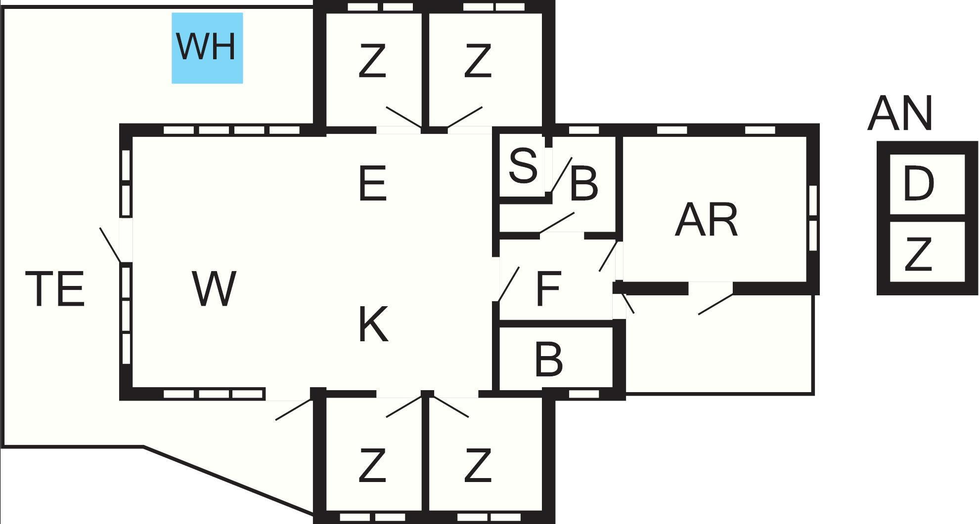 Das 2009 erbaute Ferienhaus für bis zu 14 Personen stellt diverse Freizeitmöglichkeiten zur Auswahl und hat zudem eine wohnliche Einrichtung und umfassende Ausstattung. Es ist geschmackvoll, in modernem, familienfreundlichem Stil möbliert. Die Schlafplätze verteilen sich auf vier große, helle Schlafzimmer mit guten Betten und Stauraum, einen Hems mit guter Treppe, den sogenannten Aktivitätsraum sowie einen kleineren Annex nebenan für zwei Personen.
