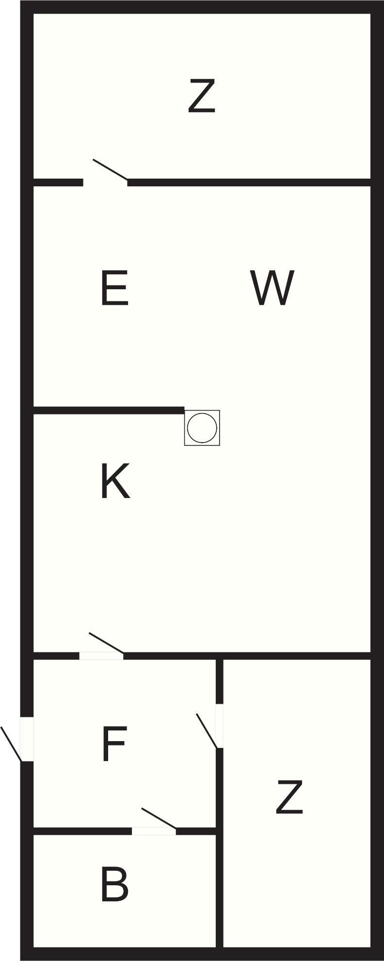 Im Inneren bewahrt das Haus seinen authentischen Charme mit den für ältere dänische Häuser typischen niedrigen Decken. Der Grundriss umfasst eine Eingangshalle, ein Badezimmer mit Dusche und eine Küche mit Essbereich, die zu einem hellen Wohnzimmer mit Holzofen und Wärmepumpe für ganzjährigen Komfort offen ist. Zwei geräumige Schlafzimmer bieten erholsame Schlafgelegenheiten.