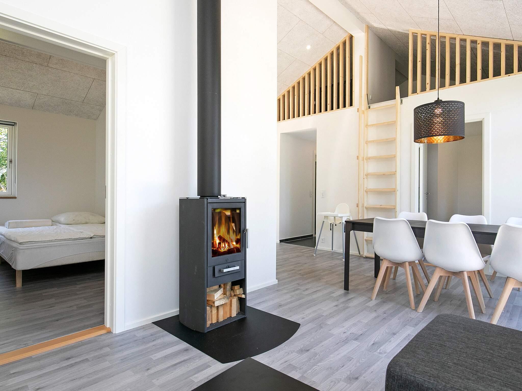 Innen stehen u.a. ein gut ausgestatteter Küchen-/Wohnbereich sowie zwei Bäder, eines mit Whirlpool und beide mit angenehmer Fußbodenheizung, zur Verfügung. Um die Heizkosten möglichst zu reduzieren, wurde eine energieeffiziente Wärmepumpe im Haus installiert, zudem gibt es einen Holzofen für kühlere Abende. Das Ferienhaus hat drei große Schlafzimmer und einen Hems mit zwei weiteren Schlafplätzen oben unter der Dachschräge. Für die ganz kleinen Gäste stehen im Haus Kinderbett und Hochstuhl bereit.