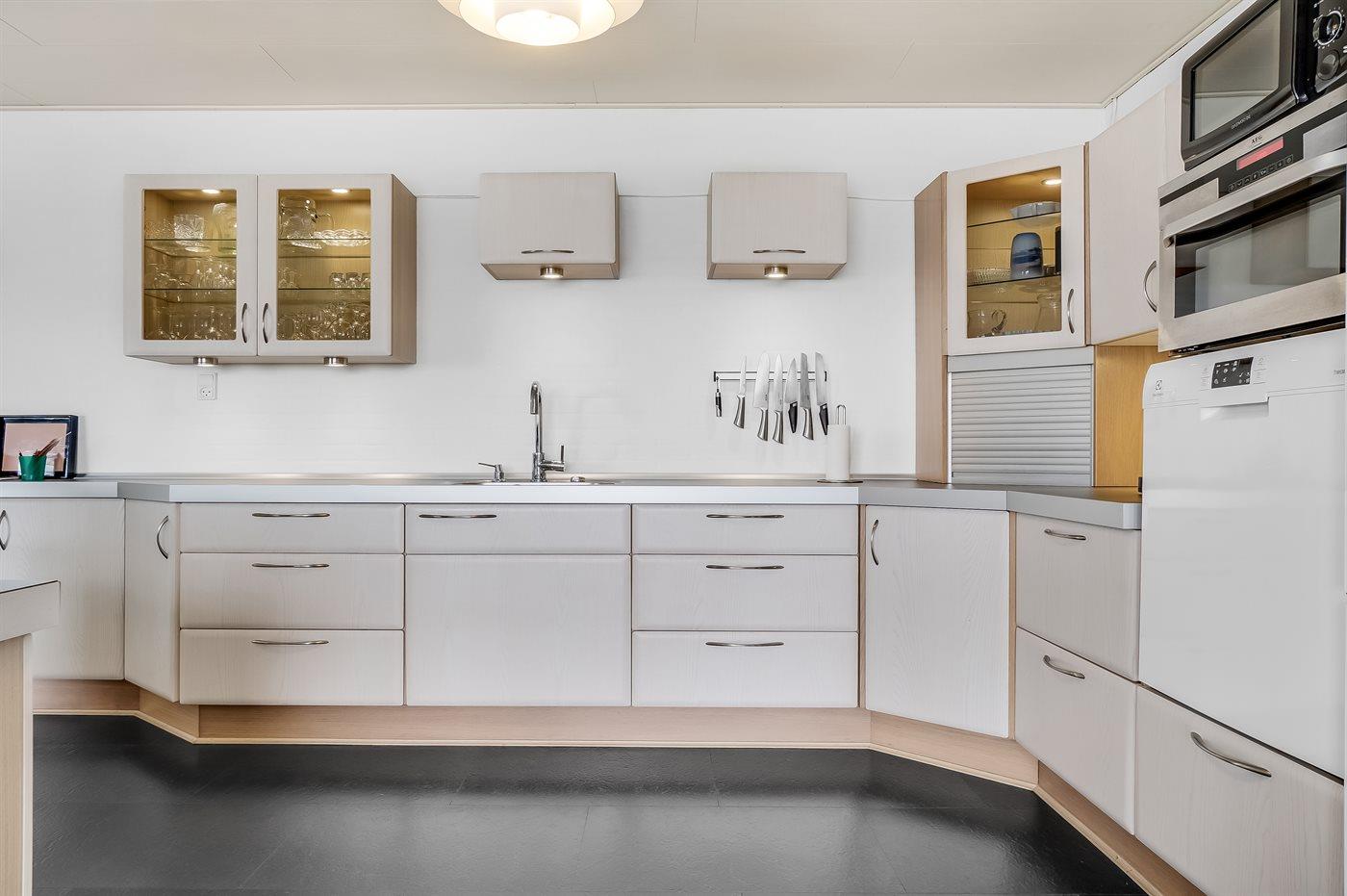 Eine moderne Wohnküche mit allen notwendigen Einrichtungen.