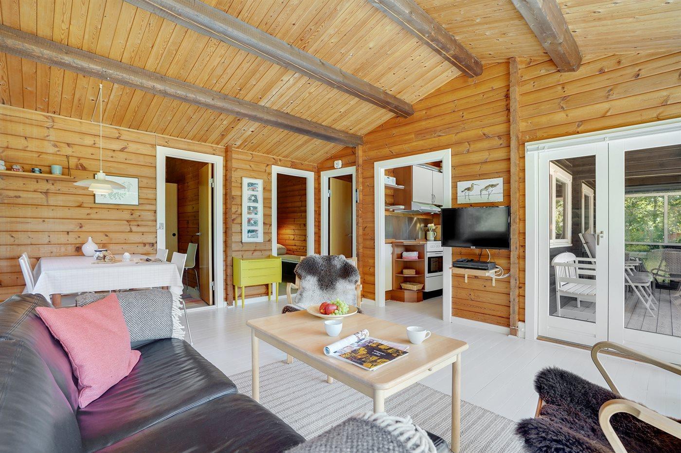 Auf großem Naturgrasgrundstück finden Sie dieses beliebte Balkenferienhaus mit gemütlicher, praktischer Einrichtung.