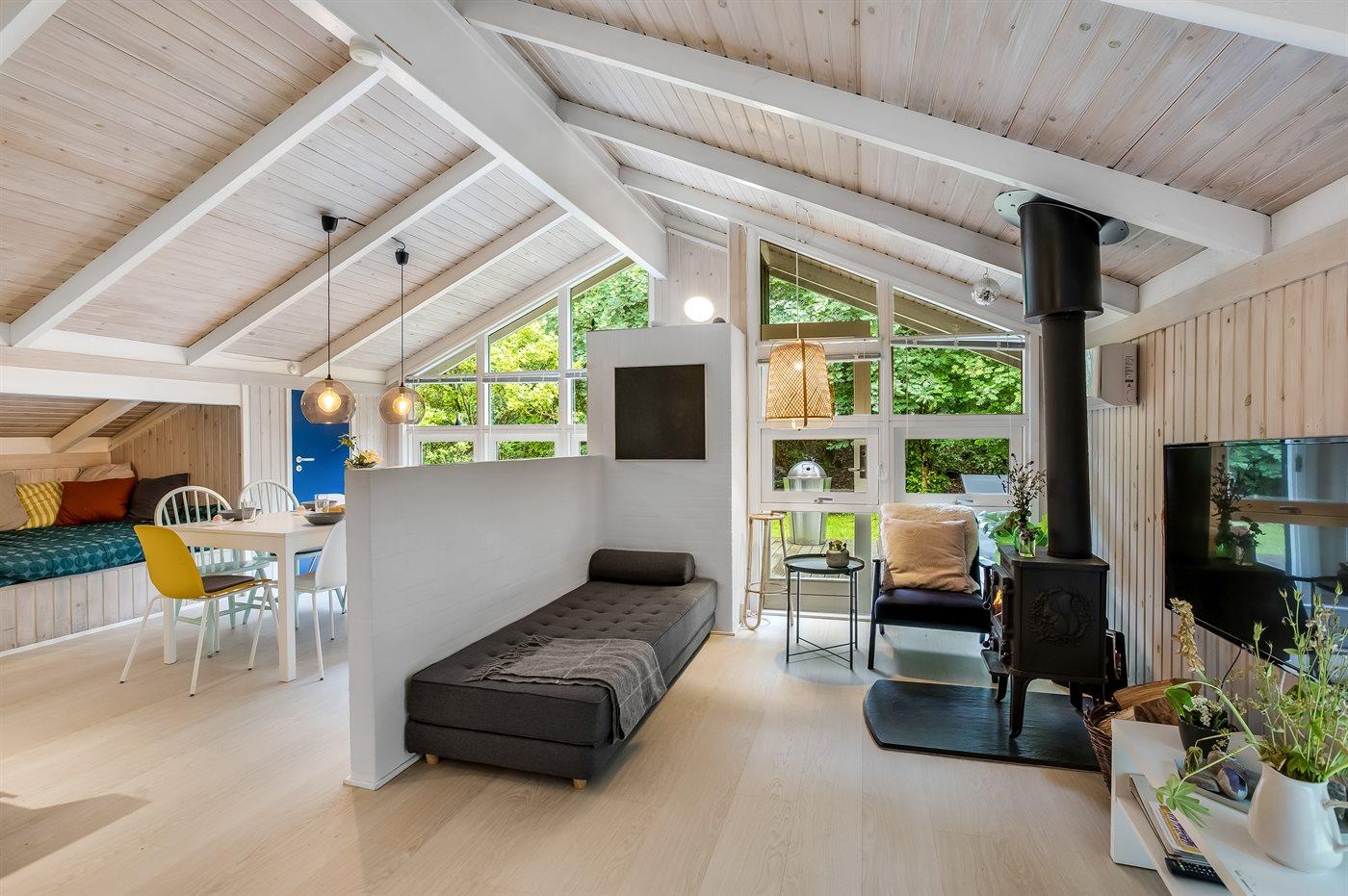Das Ferienhaus eignet sich für 8 Personen sowie 1 Kleinkind bis zu 3 Jahren. 2 der Schlafplätze eignen sich jedoch nur für größere Kinder (4-11 Jahre). Die Ferienunterkunft hat eine Wohnfläche von 135 m² und wurde 1992 gebaut. Es ist erlaubt 1 Haustier mitzubringen. Die Ferienunterkunft ist mit energiesparender Wärmepumpe ausgestattet. Die Ferienunterkunft ist mit Waschmaschine ausgestattet. Tiefkühlmöglichkeit mit 10 Liter Nutzinhalt. Es gibt außerdem einen Kaminofen. Für die jüngsten Feriengäste ist 1 Kinderhochstuhl vorhanden.