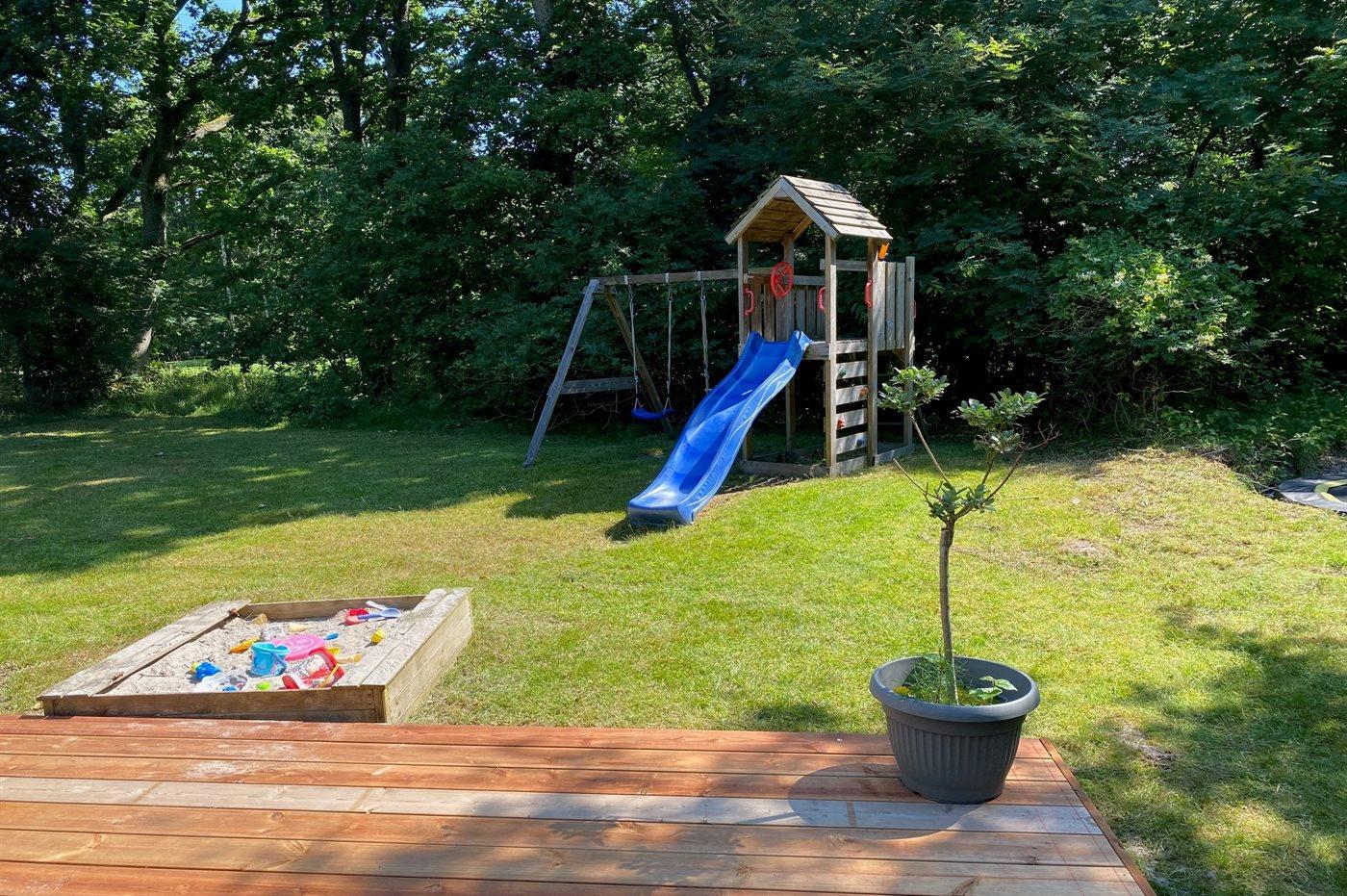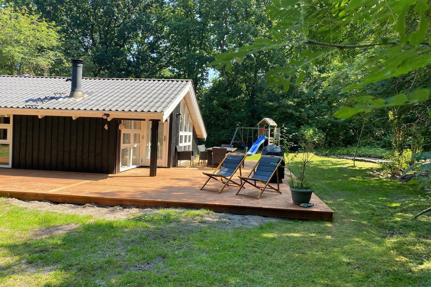 Die Ferienunterkunft liegt auf einem 2800 m² großen Naturgrundstück. Die Entfernung zum Meer beträgt 600 m. Die nächste Einkaufsmöglichkeit liegt 2900 m entfernt. Es steht ein 70 m² Terrassenareal zur Verfügung. Schaukel. Sandkasten. Trampolin. Spielturm. Es steht ein Grill zur Verfügung. Parkplatz auf dem Grundstück.