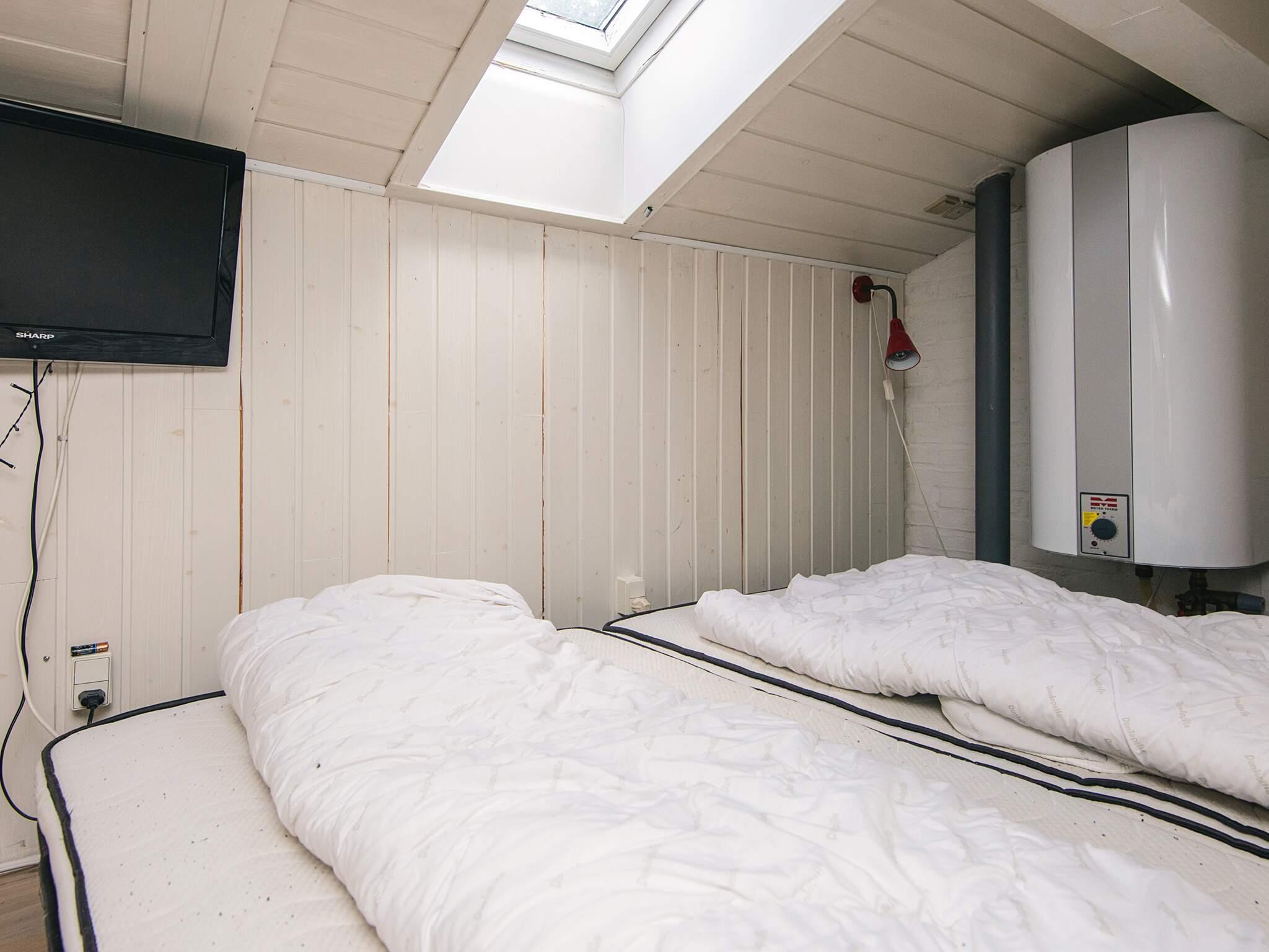 Es ist innen wohnlich eingerichtet und gut ausgestattet, mit u.a. 43 Zoll Smart-TV, Kabel-TV und kostenlosem WLAN. Oben auf dem unter dem Dach steht ein zweiter, kleiner Fernseher bereit.