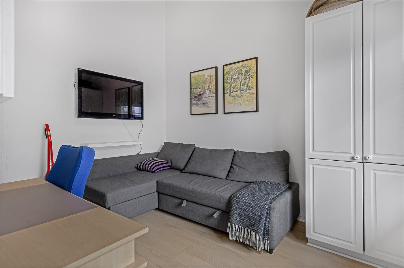 Draußen könnt ihr auf dem gemütlichen, nach Osten ausgerichteten Balkon schöne Stunden an der frischen Luft genießen – mit einem herrlichen Blick auf das Wasser, wo ihr die vorbeifahrenden Schiffe beobachten könnt. Außerdem gibt es eine nette, nach Süden und Westen ausgerichtete Terrasse – hier könnt ihr es euch z. B. mit einem guten Buch gemütlich machen und die ruhigen Abende genießen.