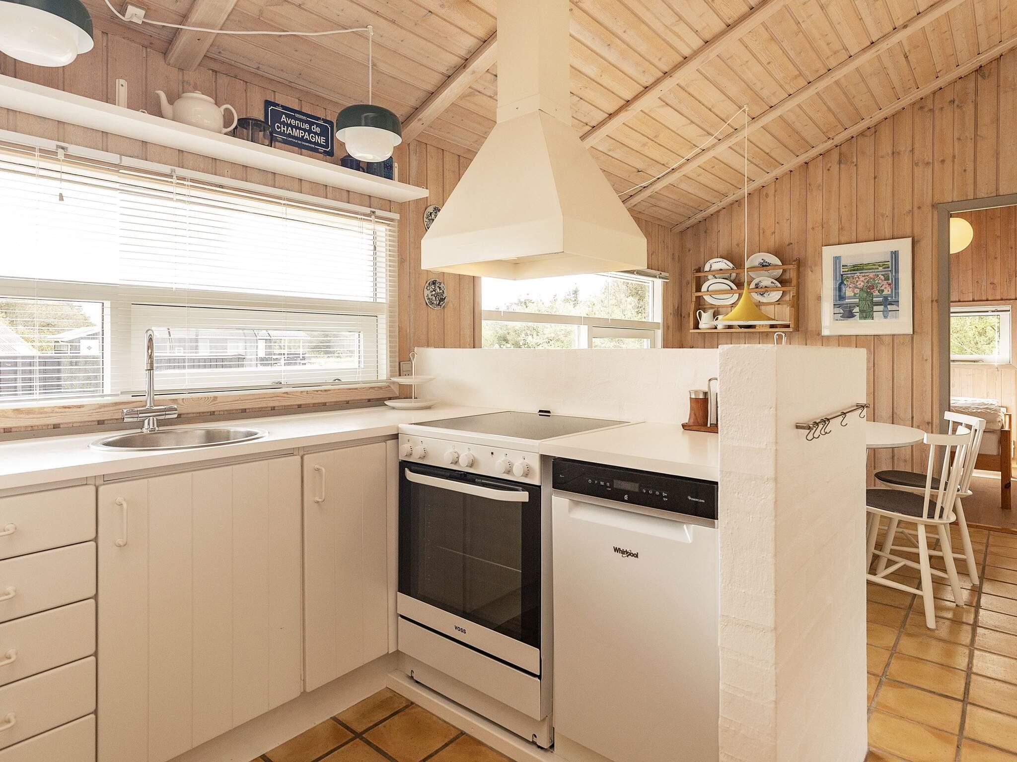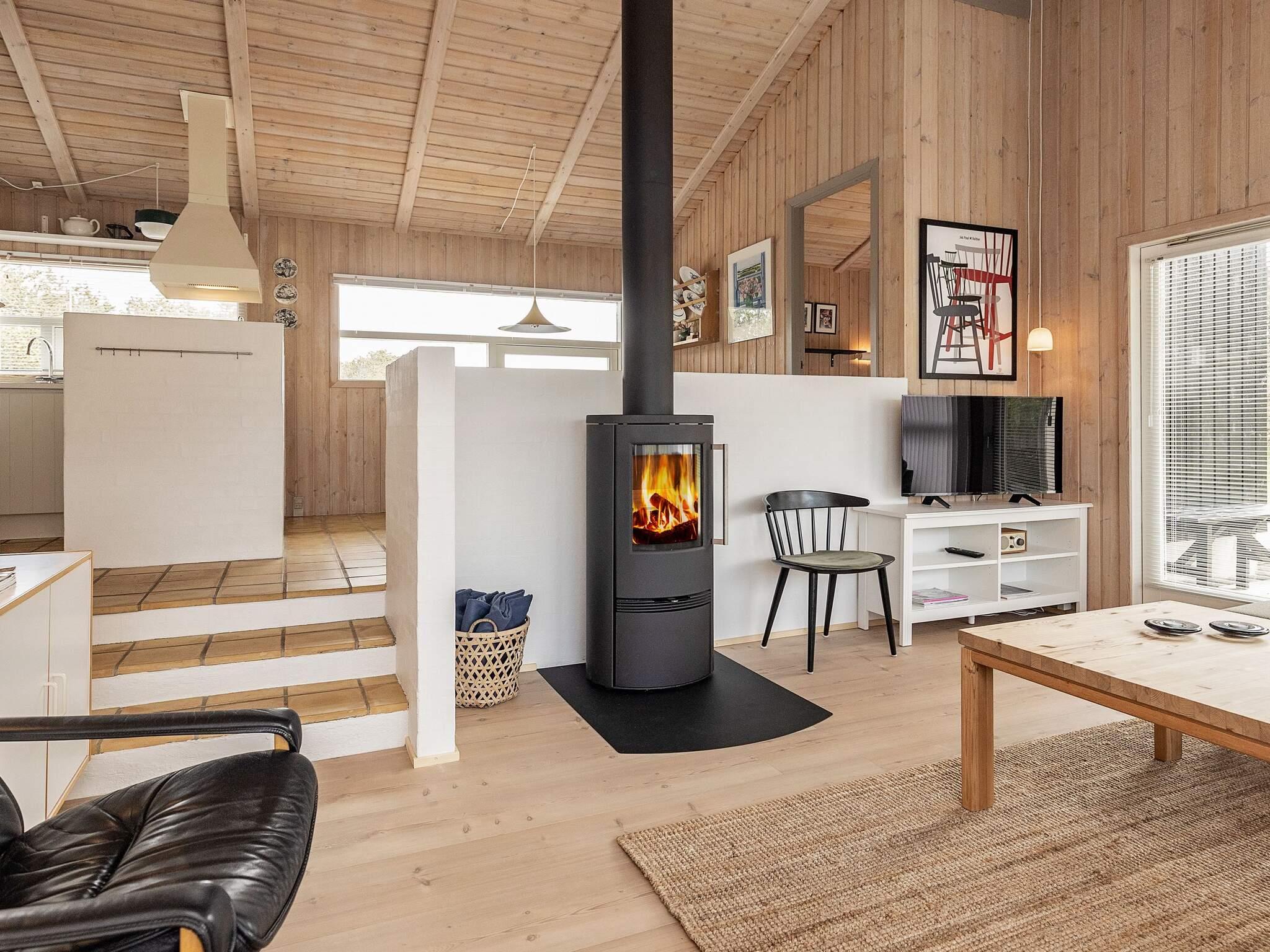 Das wohnliche Ferienhaus hat einen offenen Küchen-/Wohnbereich für das Familienleben, wobei Küche und Esszimmer durch ein paar Stufen vom Wohnbereich mit Holzofen abgetrennt sind. Dennoch kann der Austausch im Raum frei stattfinden. Eine energieeffiziente und somit nebenkostenfreundliche Wärmepumpe erwärmt bei Bedarf das Haus. Die Einrichtung ist durchgehend hell und familienfreundlich gestaltet.
