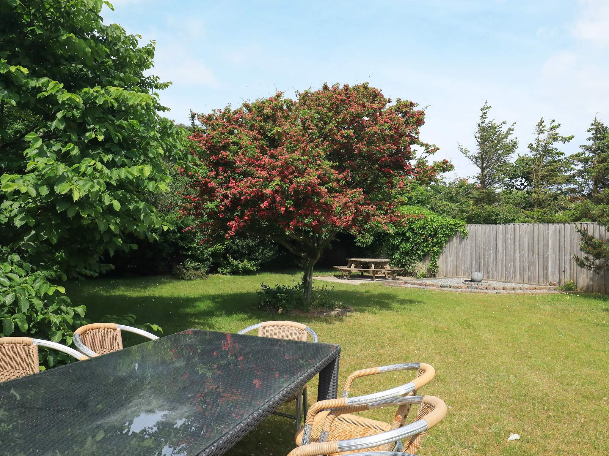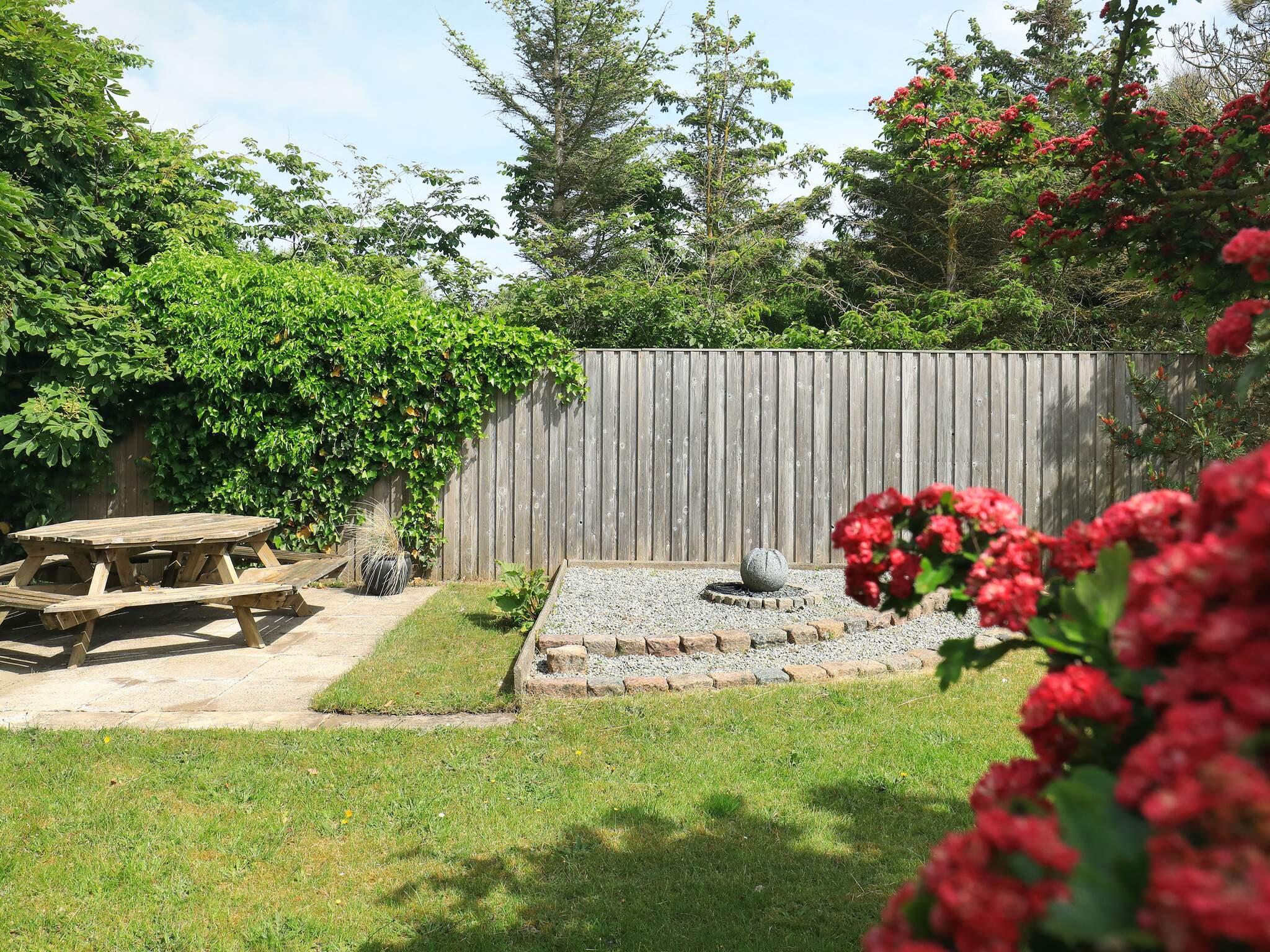Auf der Terrasse des Ferienhauses gibt es wahlweise die Möglichkeit, einen Platz in der Sonne oder im Schatten zu finden. Das Haus ist von einem schönen Gartengrundstück umgeben, das zu Spiel und Spaß im Freien zulässt.
