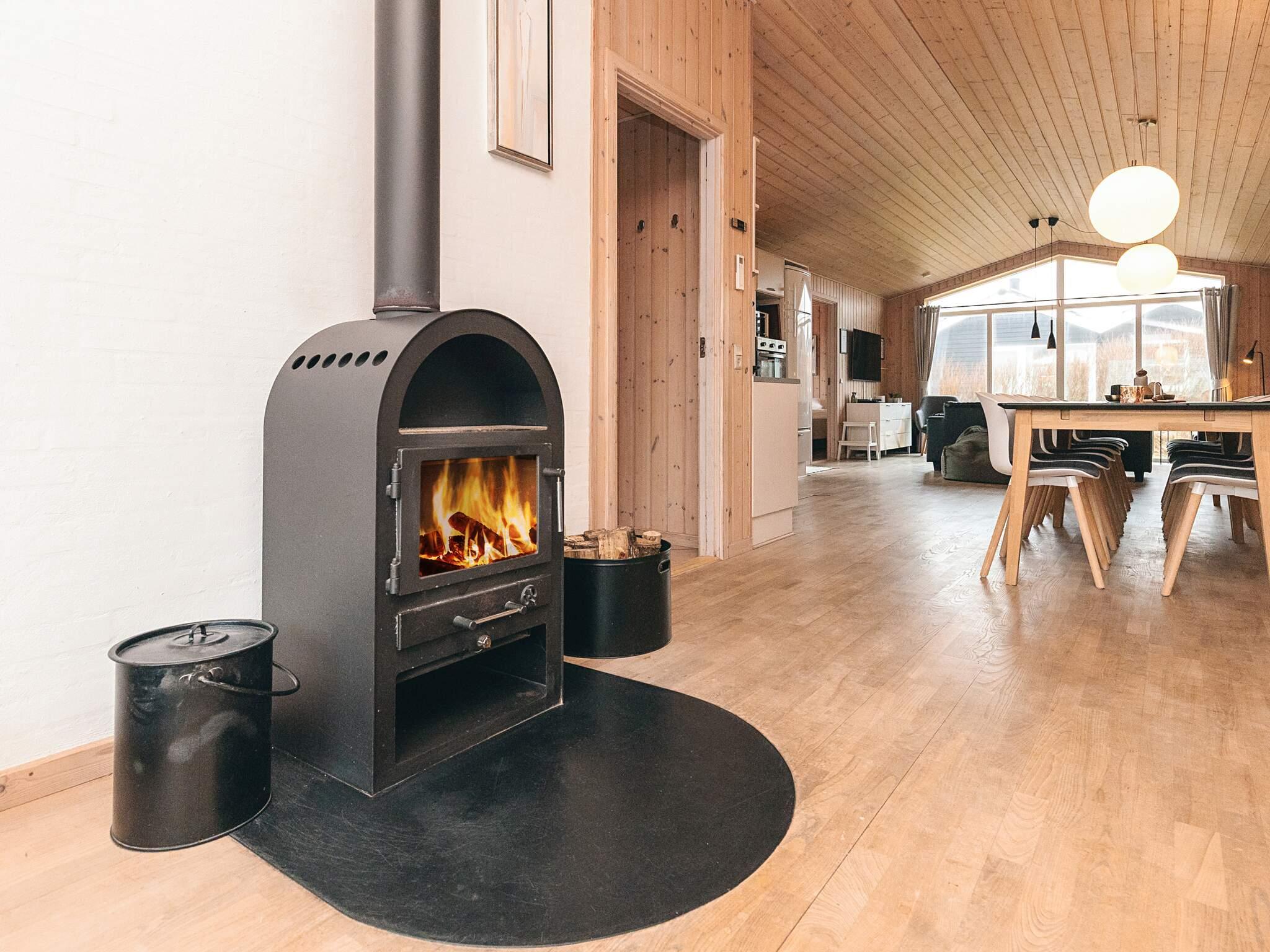 Das helle, geräumige Ferienhaus hat eine wohnliche Atmosphäre und eine schöne Inneneinrichtung. Der große Raum mit Wohnzimmer, Essbereich und offener Küche ermöglicht es, alle Aufgaben des Urlaubs gemeinsam zu erledigen. Es gibt auch viel Platz für Gemütlichkeit und Entspannung. In den Wintermonaten verfügen diese Räume über eine Fußbodenheizung. Das Wohnzimmer stellt sowohl einen Fernseher als auch einen Holzofen bereit. Der größte Teil des Hauses ist mit Holzböden ausgelegt. Mit Holzofen und Wärmepumpe im Haus ist der Verbrauch zudem energieeffizient.