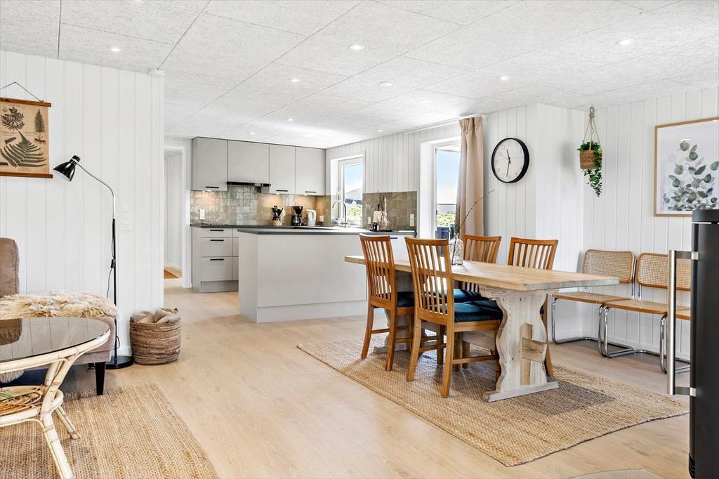 Das Ferienhaus bietet eine klassische Einrichtung mit viel Gemütlichkeit. Im Wohnzimmer, wo du dich vor dem knisternden Kaminofen entspannen kannst, gibt es ausreichend Platz, um nach einem aktiven Tag am Strand zu relaxen. Die gut ausgestattete Küche lädt zu gemeinsamen Kochabenden ein, und durch die offene Verbindung zum Wohnzimmer bleibt immer Raum für Gespräche. Das Ferienhaus verfügt über drei gute Schlafzimmer, die alle auf Komfort ausgelegt sind, sowie ein Badezimmer und ein Gäste-WC. Der Wintergarten mit Glasfenstern bietet einen fantastischen Ausblick auf die umliegende Natur, sodass du das Gefühl hast, mit der Landschaft eins zu sein – egal ob drinnen oder draußen.