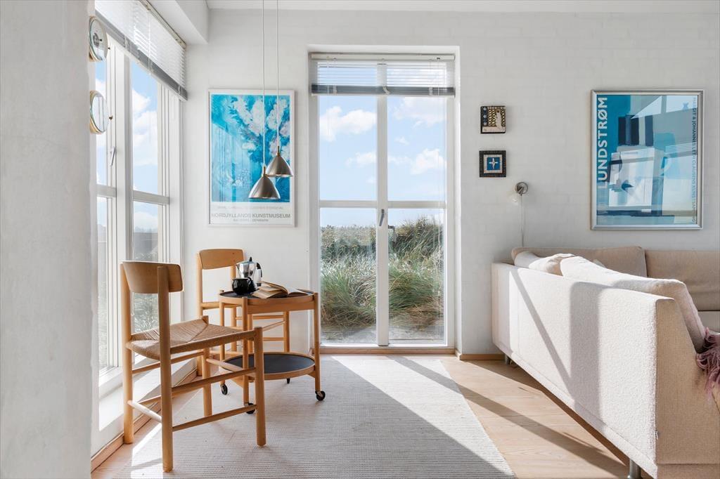Drinnen erwartet dich ein helles und modernes Ambiente, in dem sich die ganze Familie sofort wohlfühlt. Das Herz des Hauses ist der offene Übergang zwischen Küche und Wohnzimmer, der zu gemütlichem Beisammensein einlädt – ob beim Morgenkaffee oder einem hausgemachten Abendessen. Durch die großen Fenster fällt reichlich Licht ein, und du kannst den Blick auf Dünen und Meer genießen, während das Feuer im Kamin knistert. Das Haus verfügt über drei komfortable Schlafzimmer, die sowohl praktisch als auch geschmackvoll eingerichtet sind. Ein stilvolles Badezimmer und ein zusätzliches Bad im Keller bieten Komfort für alle.
