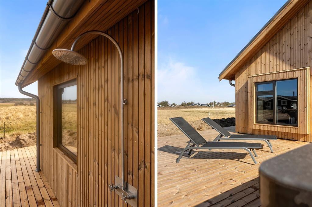 Wenn die Sonne scheint – und das tut sie in Løkken sehr häufig – verlagert sich das Urlaubsleben ganz natürlich auf die großen Terrassen, die zu Grillabenden, Entspannung und gemütlichen Momenten mit deinen Lieblingsmenschen einladen. Hier kannst du den Tag mit Vogelgezwitscher beginnen, während der Tau noch im Gras glitzert, und ihn im Outdoor-Spa unter dem Sternenhimmel ausklingen lassen, während dich das warme Wasser umgibt. Die Terrassen bieten den perfekten Rahmen für aktive Spiele, Ruhe, Bücher und lange, entspannte Mittagessen mit der salzigen Meeresbrise in der Luft.