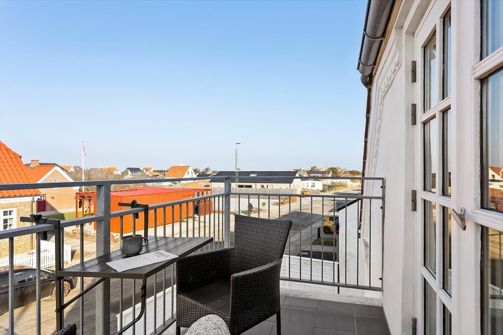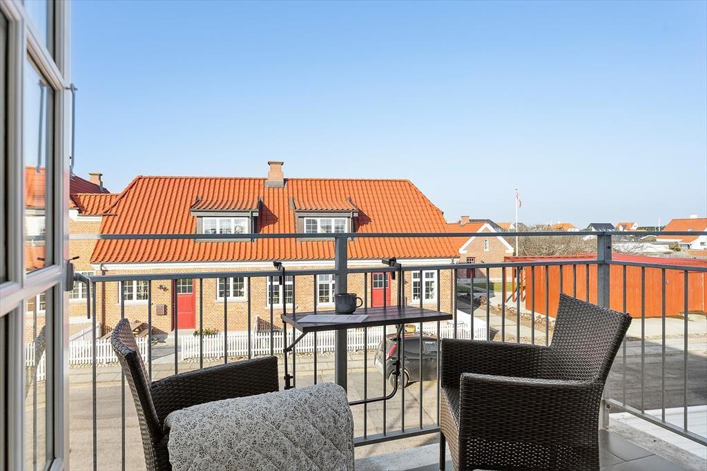 Eine der großen Qualitäten der Wohnung ist der schöne Balkon, der dir die Möglichkeit bietet, das Leben im Freien in privater und ruhiger Umgebung zu genießen. Hier kannst du den Blick über die Umgebung schweifen lassen, die frische Meeresluft spüren und das Stadtleben in angenehmer Entfernung wahrnehmen. Der Balkon ist der perfekte Ort, um den Tag mit einem Frühstück in der Sonne zu beginnen oder den Abend mit einem Glas Wein ausklingen zu lassen, während sich das Licht langsam über Løkken senkt. Der stimmungsvolle Eingangsbereich und der Badehotel-Charakter der Immobilie tragen zu einem besonderen Urlaubsgefühl bei, bei dem sich das Tempo verlangsamt und die Sinne geschärft werden. Hier erlebst du das Gefühl eines klassischen Badeurlaubs – mit Zeit für Muße, Entspannung und kleine Pausen im Freien, in denen du das Ferienleben in deinem eigenen Tempo genießen kannst.