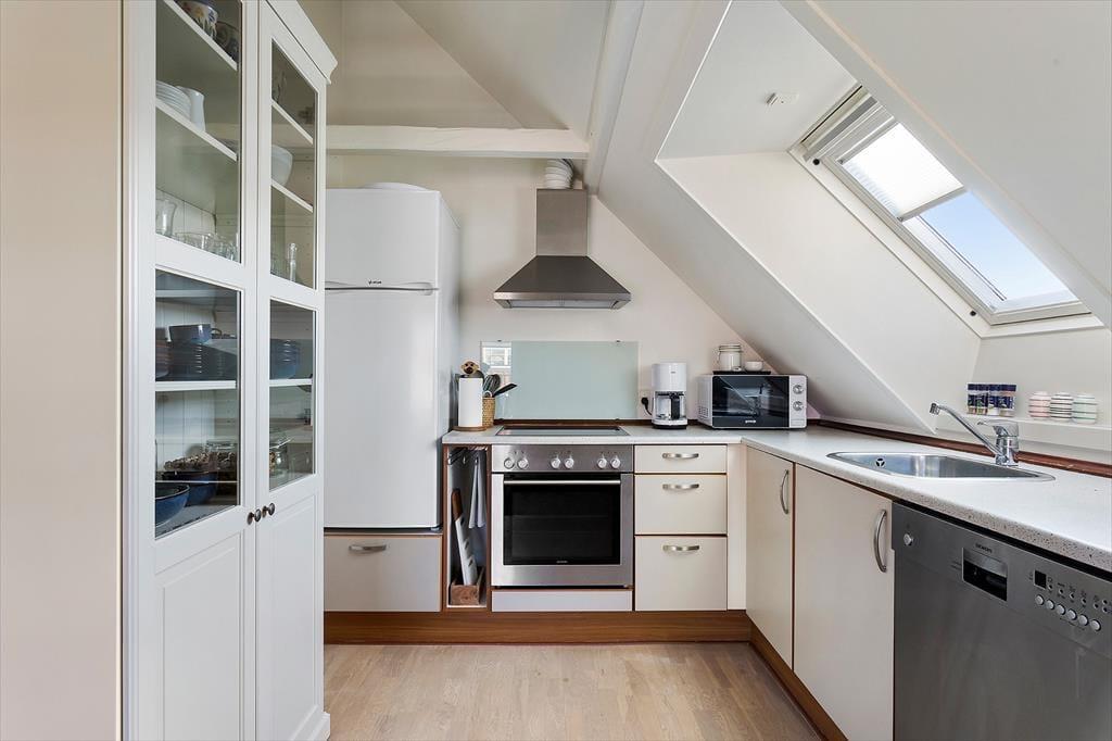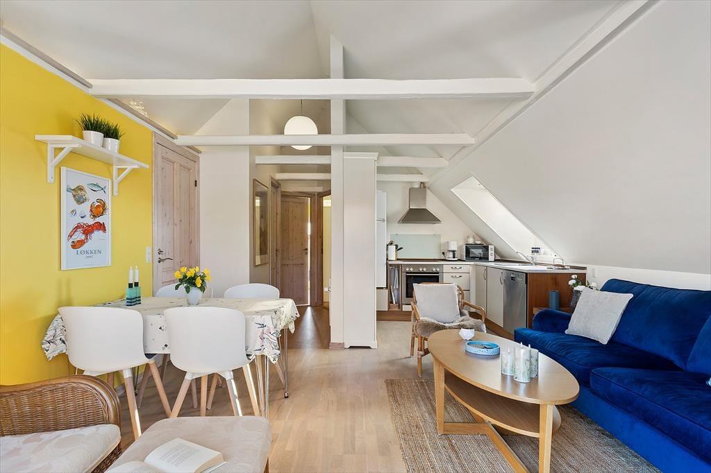 Harald Fishers Vej 49 A ist die ideale Wahl, wenn du von einem erholsamen Urlaub im Herzen von Løkken träumst – nah am Strand, am Stadtleben und in stimmungsvoller Umgebung. Die Wohnung befindet sich im 1. Obergeschoss und bietet eine gelungene Kombination aus klassischer Ferienstimmung und modernem Komfort, nachdem sie 2025 teilweise modernisiert wurde. Schon bei der Ankunft wirst du von einem schönen Eingangsbereich empfangen, der klare Bezüge zu den charmanten Badehotels aufweist, für die die Gegend bekannt ist, und der vom ersten Schritt an den perfekten Rahmen für den Urlaub schafft.
