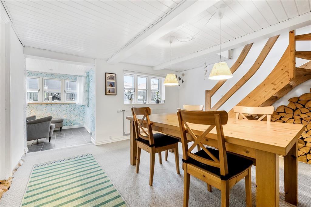 Dieses helle und einladende Ferienhaus kann der Rahmen für Ihren nächsten Urlaub in Løkken sein. Das Haus hat zwei Etagen, und im ersten Stock befinden sich ein Schlafzimmer und das Fernsehzimmer. Im Wohnzimmer gibt es einen Holzofen, der für angenehme Wärme und eine gemütliche Atmosphäre sorgt. Im gemütlichen Wintergarten können Sie das einfallende Licht genießen und sich bei einer guten Lektüre und einer Tasse Kaffee entspannen.